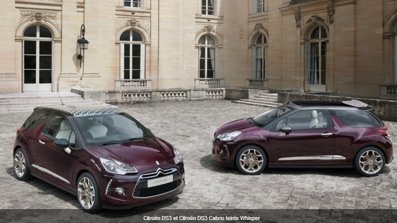 Une nouvelle teinte de carrosserie nommée « Whisper » fera son apparition, un noir profond avec une nuance assez prononcée de violet comme celle du concept N°9 présentée à Pékin l’année dernière. Les véhicules de la ligne DS se verront habillés d’une trame ornée « DS » comme sur la DS3 Cabrio, une trame très luxueuse rappelant les toits Vinyl des anciennes Citroën DS à partir de 1972.