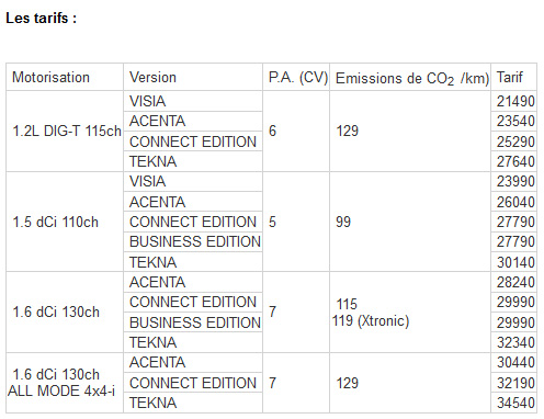 Après vous l’avoir présenté en début de mois sur Blog-Moteur, voici la gamme complète ainsi que les tarifs du nouveau Nissan Qashqai. Disponible à partir de 21 490 euros en version Visia avec moteur essence, le nouveau Qashqai est bien placé face à ses concurrents directs que sont les Peugeot 3008 et les Citroën C4 Picasso (23000€)