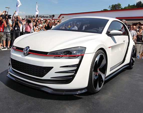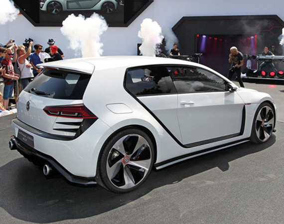 Sous une carrosserie élargie de 7 cm pour accueillir des jantes de 20 pouces chaussées de pneumatiques de 235 mm de large à l’avant, 275 mm à l’arrière, cette super GTI a en effet été pensée comme une authentique voiture de course. Le directeur du Design de la marque Allemande, Klaus Bischoff a commenté : « Le but de notre équipe de designers était de donner un avant-goût spectaculaire des Volkswagen GTI du futur »