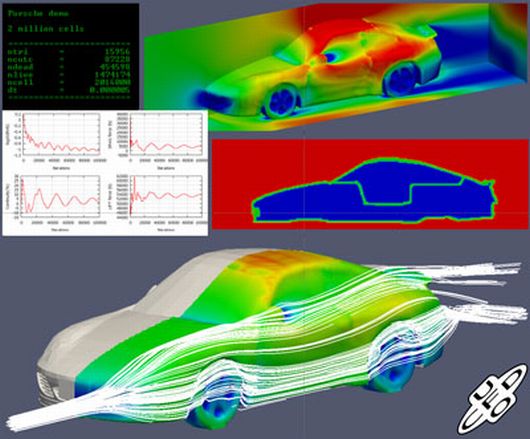 La partie la plus importante sur un circuit, c’est l’aérodynamique. Les équipes ont travaillé à partir de modèles CAO pour faire des simulations CFD (Computational Fluid Dynamics) afin de déverminer et d’optimiser l’aero. En parallèle, des études en soufflerie sont réalisées sur la maquette pour optimiser la portance et le dimensionnement du refroidissement du moteur et des freins.