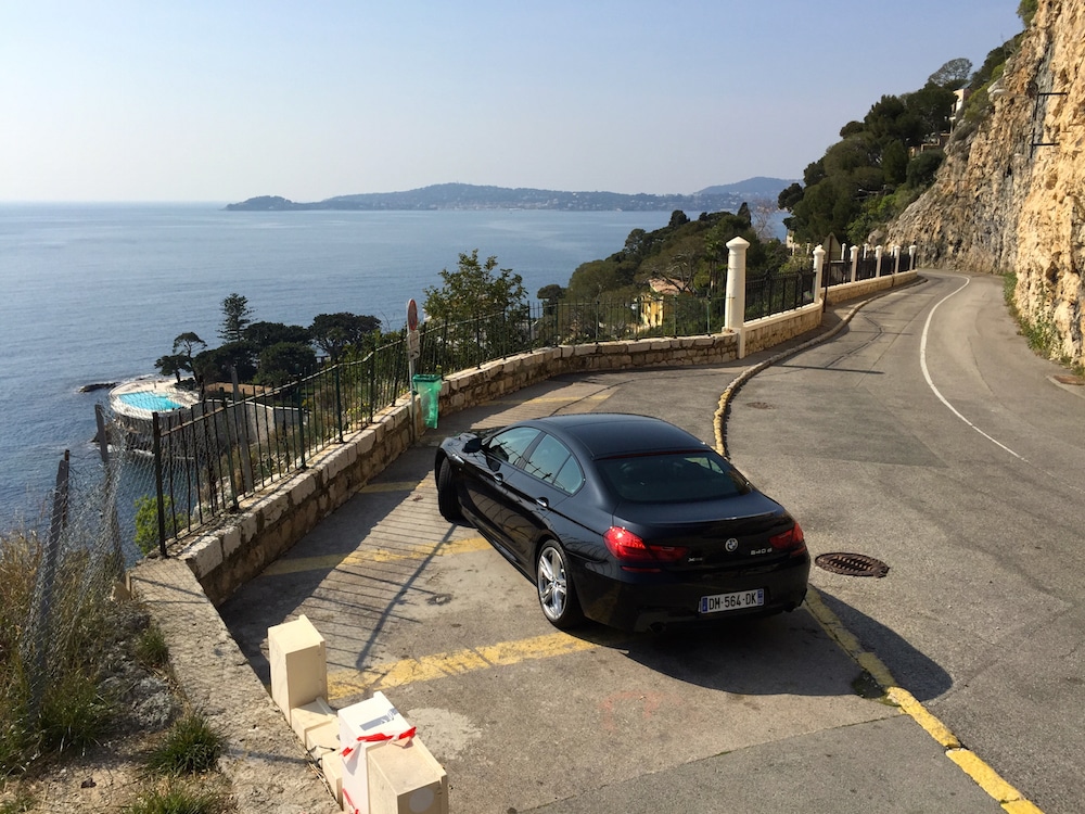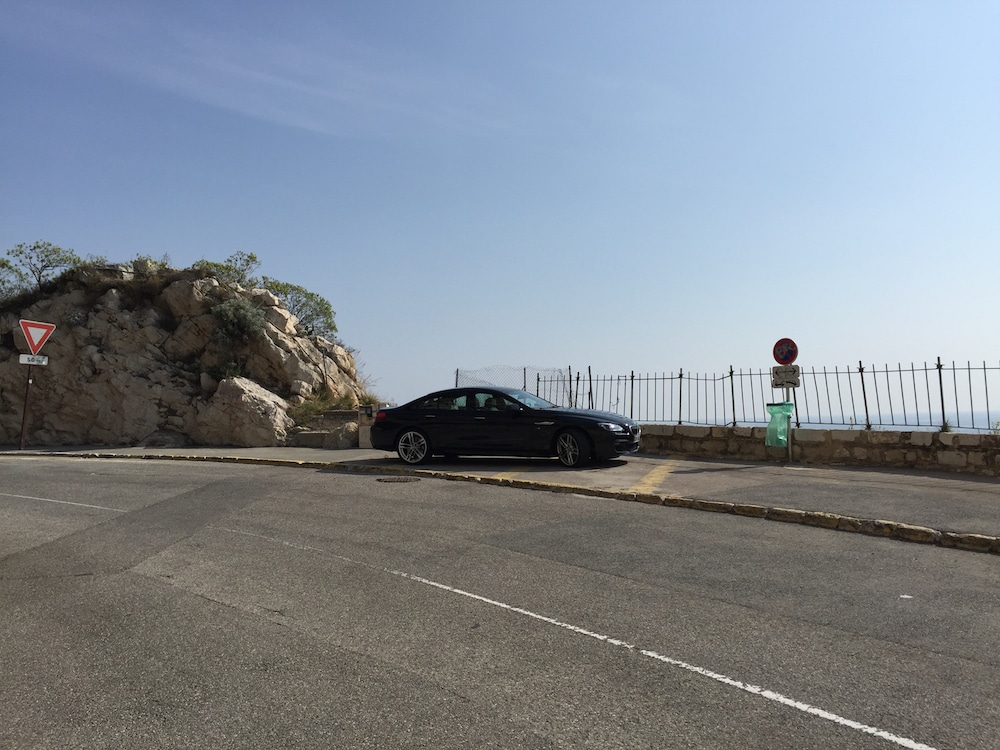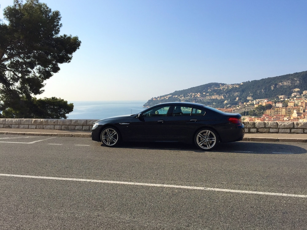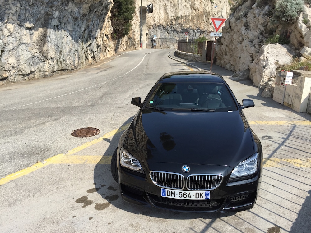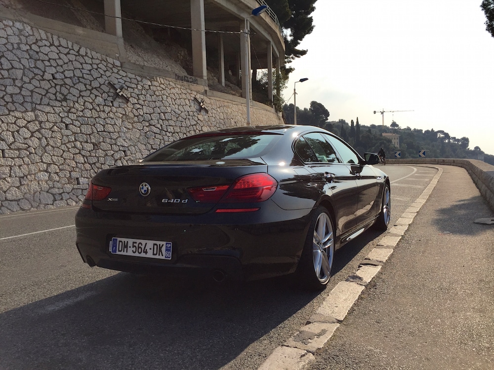 Ce petit road trip de 4 jours démarre à la sortie de l’aéroport de Nice. direction Monaco par la cote. bah oui une 640 Gran Coupé est faite pour Monaco ! Premier contact et première tension. La 640d est large, très large même et pour ceux qui ont déjà pris la promenade des Anglais avec un véhicule conséquent aux heures de pointes sauront de quoi je parle. C’est serré ! Mais, et là c’est une surprise, la BMW Gran Coupé attire tous les regards. Les passants et les autres usagés de la route semblent intrigués par cette grosse BMW au look hésitant entre sport et prestige. On sort enfin de la ville pour retrouver les petites routes qui longent la cote jusqu’à Monaco. Et encore une fois le gabarit n’aide pas la 640. Ces petites routes sont plutôt étudiées pour une Abarth 500 ou une Mini Cooper S. Mais il faut reconnaitre qu’elle tire plutôt bien son épingle du jeu. Malgré ses deux tonnes et ses cinq mètres de long elle conserve une belle agilité et le moteur extirpe sans sourciller notre voiture de chaque virage. Il faut observer quelques règles pour cela. La première c’est de régler l’Adaptative Drive sur sport. Ça durcit la suspension, sans qu’elle ne devienne jamais cassante, mais surtout ça permet à la boite auto à 8 rapports de sortir de sa torpeur. Du coup on passe d’une limousine confortable et docile à une grosse berline haute performance. Toujours pas une sportive, mais ça envoie tout de même pas mal ! Le moteur est vraiment performant et un châssis plus tonique aurait été adapté. La seconde règle à observer est une conduite fluide, ce qui n’empêche pas d’être dynamique, mais il faut éviter de la brusquée. Elle n’aime pas les transferts de masses violents. On ressent alors immédiatement les deux tonnes qui lui font prendre du roulis, alors qu’avec une conduite souple le roulis est mieux maitrisé. La tenue de route est irréprochable, d’autant qu’avec le xDrive il est quasi impossible de mettre la motricité en défaut, même en sortie d’épingle en mode Sport + avec les 630 nm de couple… ça ne bronche pas !