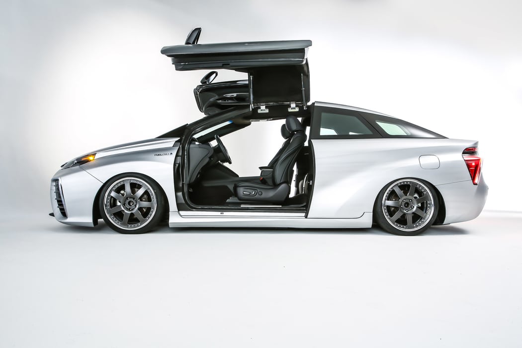 Déjà très futuriste, la Mirai (qui embarque d’ailleurs de série une pile à combustible qui ne dénoterait pas dans la DeLorean du Doc…), peaufine ici son look extravagant, en se dotant notamment de ses fameuses portières « papillon », ou de sa peinture en aluminium poli. Elle se débarrasse par ailleurs de ses portières arrière, pour adopter un profil de coupé qui lui sied d’ailleurs plutôt bien.