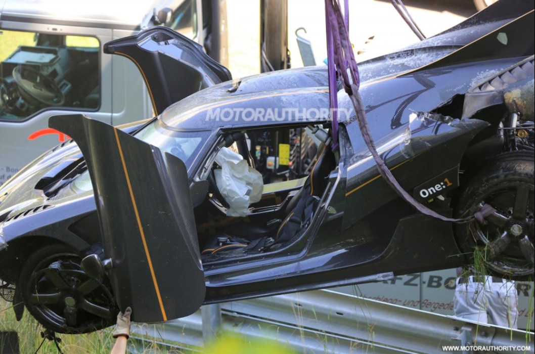 Selon le récit d’un photographe du site américain Motorauthority.com présent sur les lieux au moment de l’accident, l’auto serait arrivée beaucoup trop vite pour aborder ce virage de la section du Adenauer Forst. Le pilote n’aurait alors pas pu éviter le rail, malgré un long freinage. Au regard des performances de l’engin (capable rappelons-le d’atteindre 400 km/h en 20 petites secondes!), on imagine volontiers la vitesse engrangée par l’auto sur cette portion de la piste.