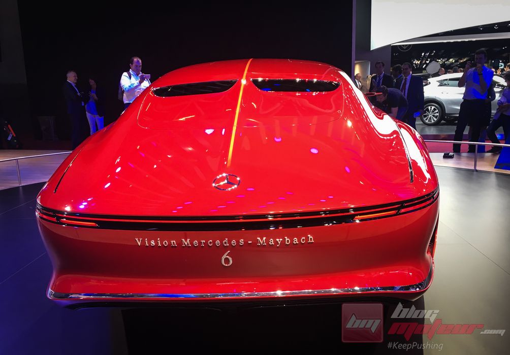 Cette exubérance n’est rien face à la folle Vision Mercedes Maybach. Propulsé par 4 moteurs électriques qui développent la bagatelle de 750 ch (la marque annonce une autonomie de 500 km), ce coupé 2+2 se distingue par des gimmicks qui en font l’auto la plus folle du Mondial : capot démesurément long (tout comme le reste de l’auto d’ailleurs, qui s’étend sur 5,70 m…), face arrière percée de deux miniscules meurtrières, et calandre béante.