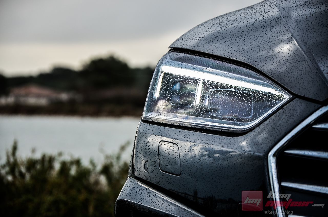 On est parti dans les Cévennes, voir ce qu’elle avait dans le ventre et m’a fois nous n’avons pas été déçus. Avec Jean-Charles d’Autocult, nous avons enchaîné les virages sans nous soucier de la météo. Par pure folie ? Non bien au contraire, le châssis de la S5 couplé à la technologie quattro fait des merveilles et reste joueur lorsque qu’on le sollicite vraiment. L’arrière se dérobe alors tout en douceur sans pour autant nous mettre en danger. La boite tiptronic à 8 rapports est un régal de précision. On est vraiment impressionné par cette berline statutaire qui étonne par son agilité et ses performances. Au vu des dites performances, combien de propriétaires utiliseront 100% des capacités de l’Audi S5 ? Très peu, a n’en pas douté.
