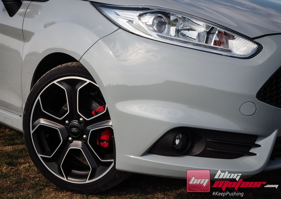 D’un point de vue cosmétique, la Fiesta ST200 évolue très peu par rapport à la ST classique. Les plus avertis noteront tout de même ses jantes 17 pouces noir mat exclusives, ses étriers de freins rouges, son badge apposé sur le hayon, et surtout sa teinte spécifique « Gris Storm » (un blanc et un noir sont également disponibles). Si ceux qui rêvent d’une « baby Focus RS » seront sans doute déçus, les autres apprécieront en revanche sa ligne sportive mais pas exubérante, avec ses pare-chocs ajourés, ses bas de caisse suggestifs, et son aileron arrière qui l’est tout autant.