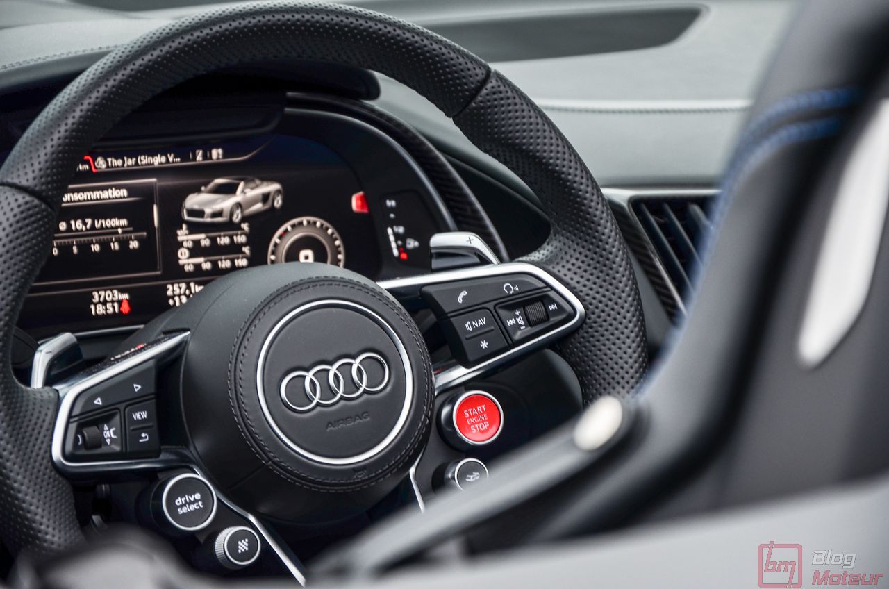 Il n’en reste pas moins un véhicule tout bonnement exceptionnel, de par ses courbes mais aussi son moteur atmosphérique d’un temps bientôt révolu. Lors du dernier salon de Francfort, Audi a d’ailleurs présenté la version V10 Plus de 610ch. Nous en tout cas, on est prêt, juste pour voir la différence! Oui on est comme ça chez Blog-Moteur.