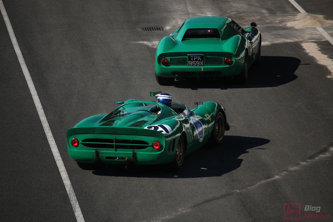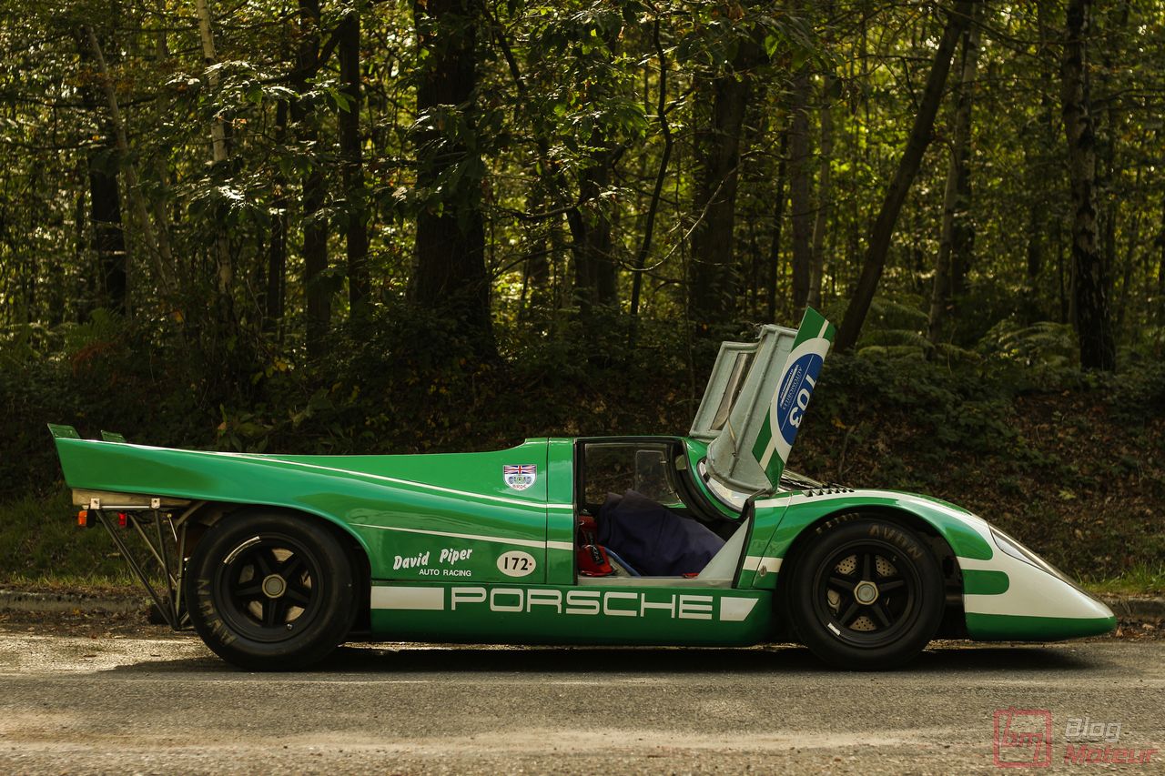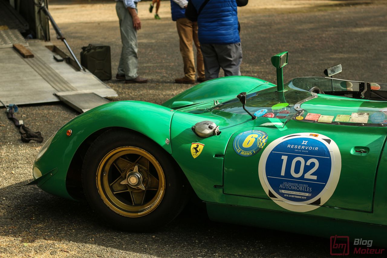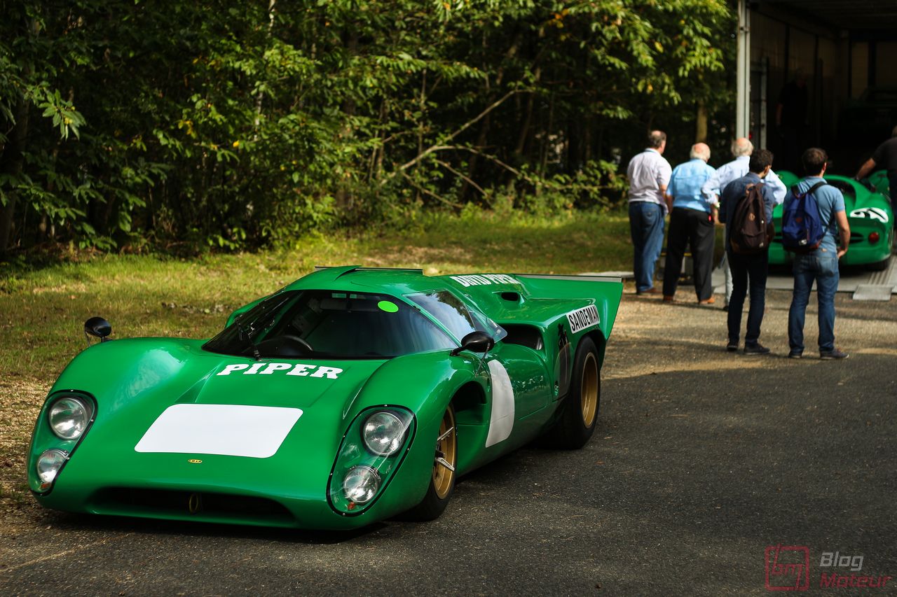 On vous parlait « d’invitées de choix », mais il convenait de traiter à part les fabuleuses autos de la collection de David Piper ! Rappelons que David Piper est un pilote britannique ayant notamment couru en F1 (Silverstone 1959 et 1960) et aux 24h du Mans (1963-1970), et grièvement blessé à la jambe droite sur le tournage du fameux film ‘Le Mans’ en 1970 aux côtés de Steve McQueen et de Jacky Ickx. Il continuera néanmoins à restaurer ses belles autos qui prennent l’air sur quelques événmenets historiques comme aux Grandes Heures ! On trouvait dans leur fameux vert caractéristique les Lola T70 Mk III B, Ferrari 330 P4, 250 LM, 365 P (rouge !) et 365 P2, plus la mythique Porsche 917 K … (Les P4 et 365 P m’ont échappé … Mea culpa.. ) Beaucoup d’exclusivités à Linas-Monthléry !