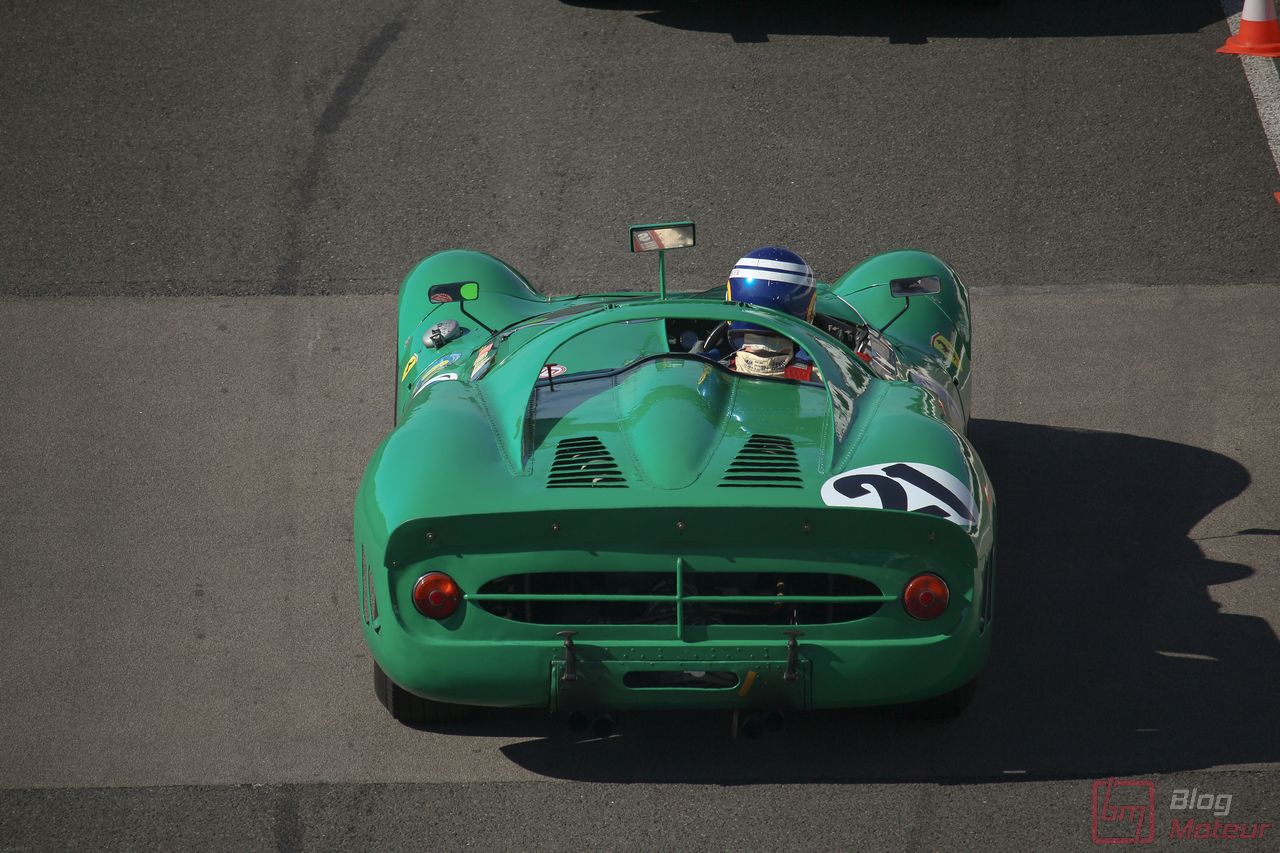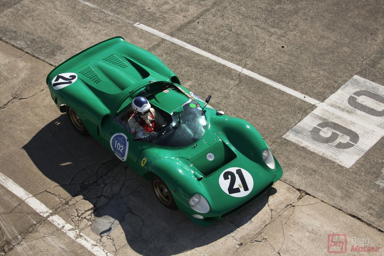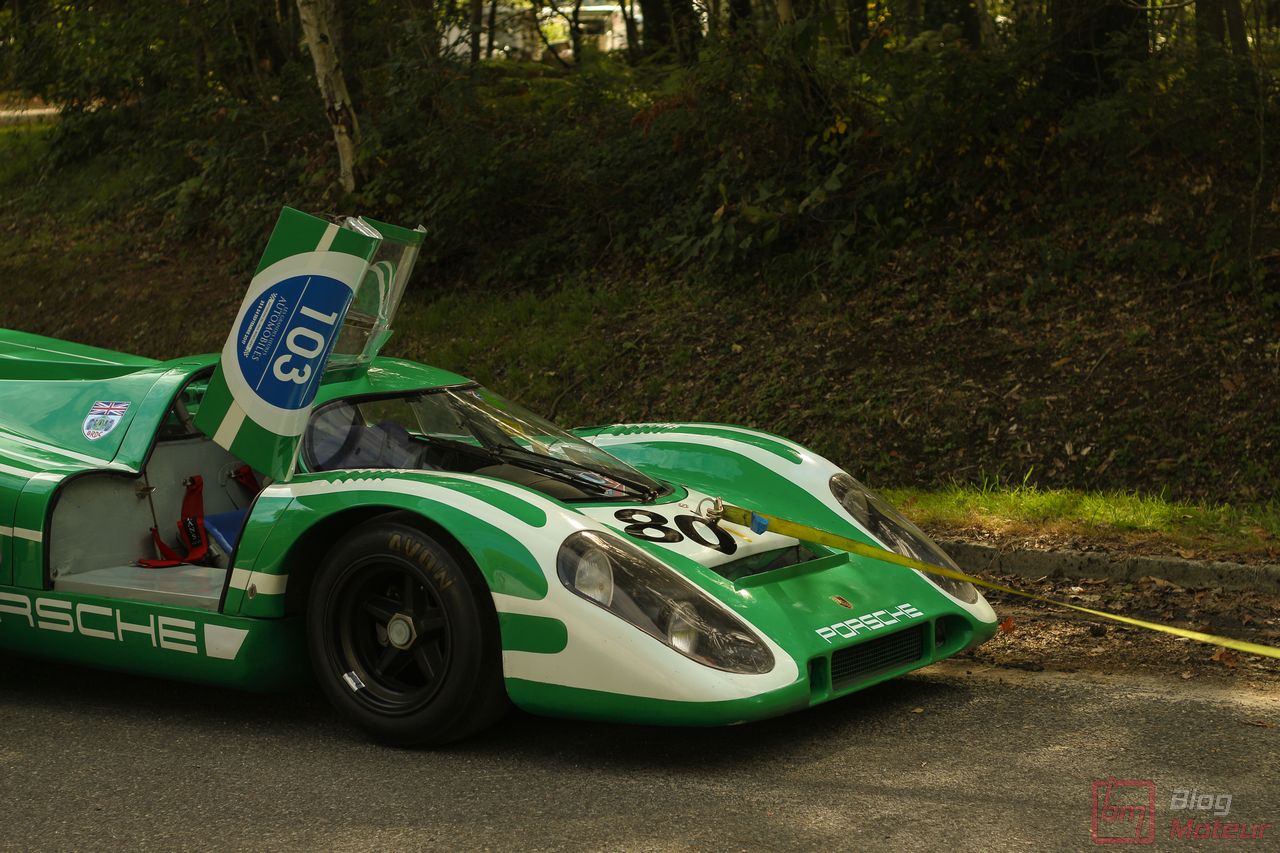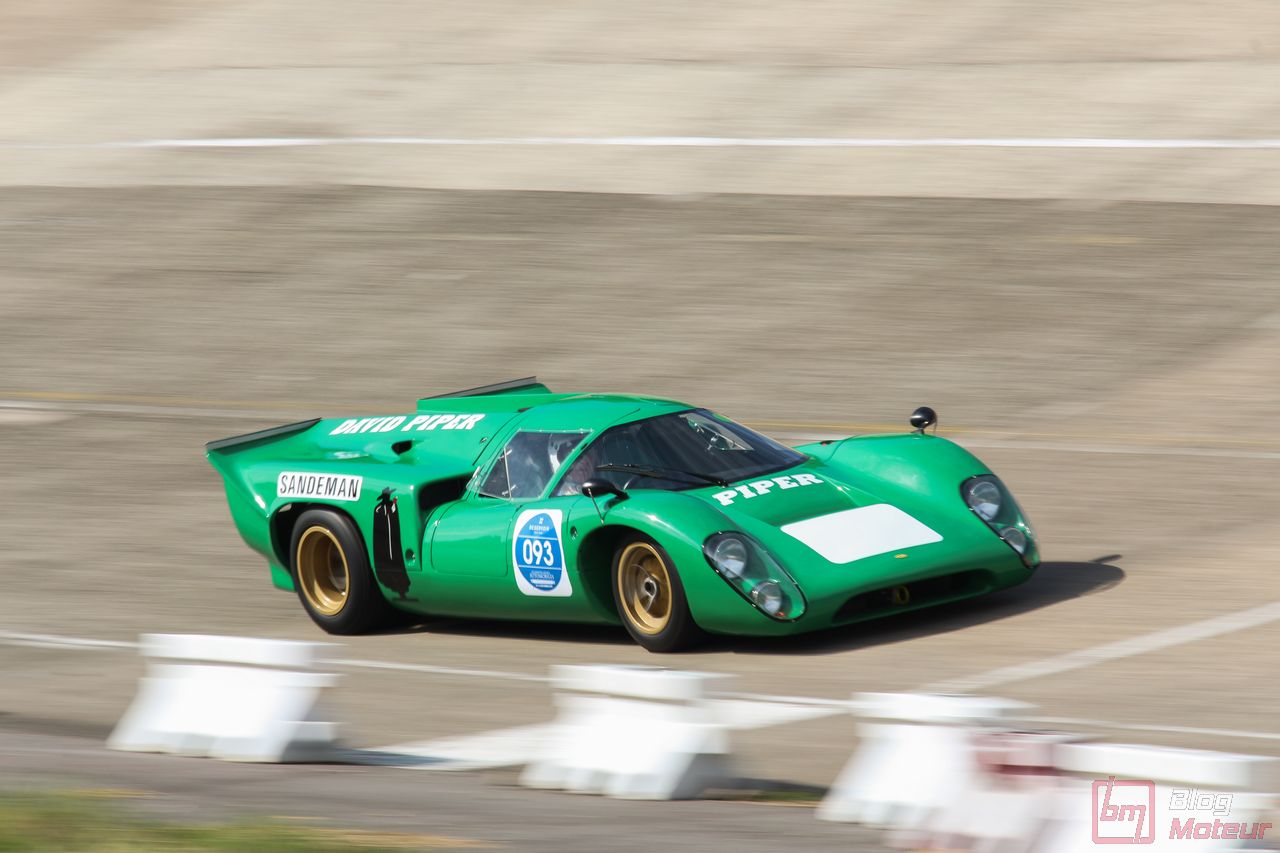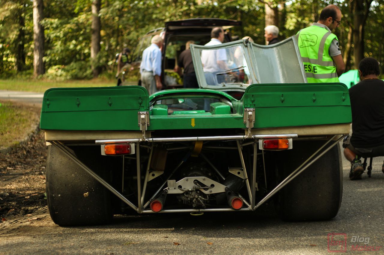 On vous parlait « d’invitées de choix », mais il convenait de traiter à part les fabuleuses autos de la collection de David Piper ! Rappelons que David Piper est un pilote britannique ayant notamment couru en F1 (Silverstone 1959 et 1960) et aux 24h du Mans (1963-1970), et grièvement blessé à la jambe droite sur le tournage du fameux film ‘Le Mans’ en 1970 aux côtés de Steve McQueen et de Jacky Ickx. Il continuera néanmoins à restaurer ses belles autos qui prennent l’air sur quelques événmenets historiques comme aux Grandes Heures ! On trouvait dans leur fameux vert caractéristique les Lola T70 Mk III B, Ferrari 330 P4, 250 LM, 365 P (rouge !) et 365 P2, plus la mythique Porsche 917 K … (Les P4 et 365 P m’ont échappé … Mea culpa.. ) Beaucoup d’exclusivités à Linas-Monthléry !