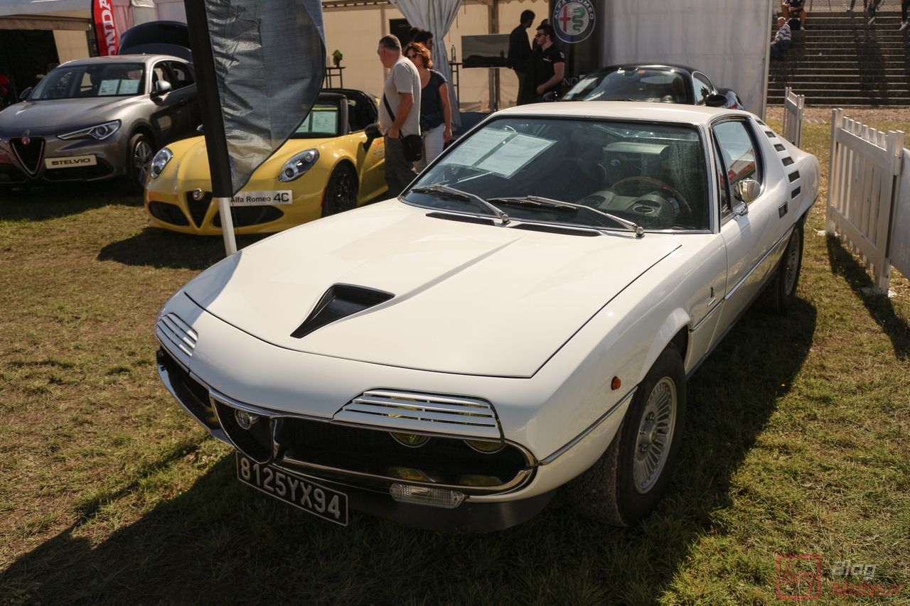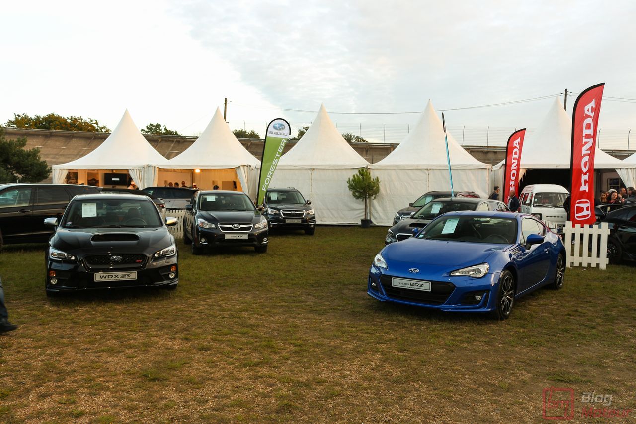 Peugeot n’était pas le seul à présenter des autos en exposition. Services presse ou concessionnaires avaient alors apporté leurs dernières autos … et quelques (trop rares) anciennes. Voici alors Alfa Romeo avec ses dernières Giulia et Stelvio mais aussi la toujours très charismatique 4C Spider … l’exubérante Montréal .. Honda venait à nouveau à Montlhéry avec ses dernières Civic Type R et NSX. Citons encore Mercedes avec ses AMG GT et GTC et autres Classe S Cabriolet ; Volvo avec ses récentes XC60, S60 Polestar, V90 R-Design / Cross Country ; Land Rover avec ses Discovery et le tout récent Range Rover Velar ou encore Subaru avec son BRZ facelift.