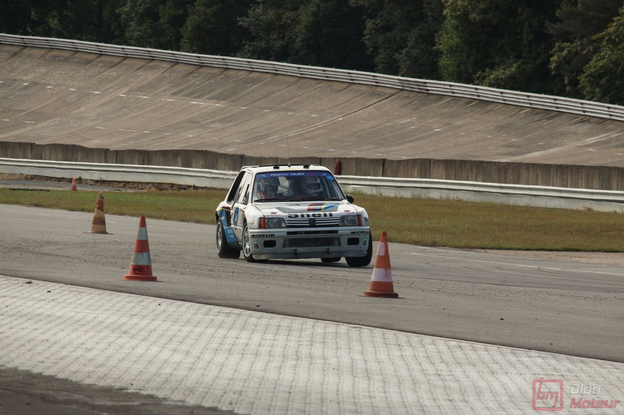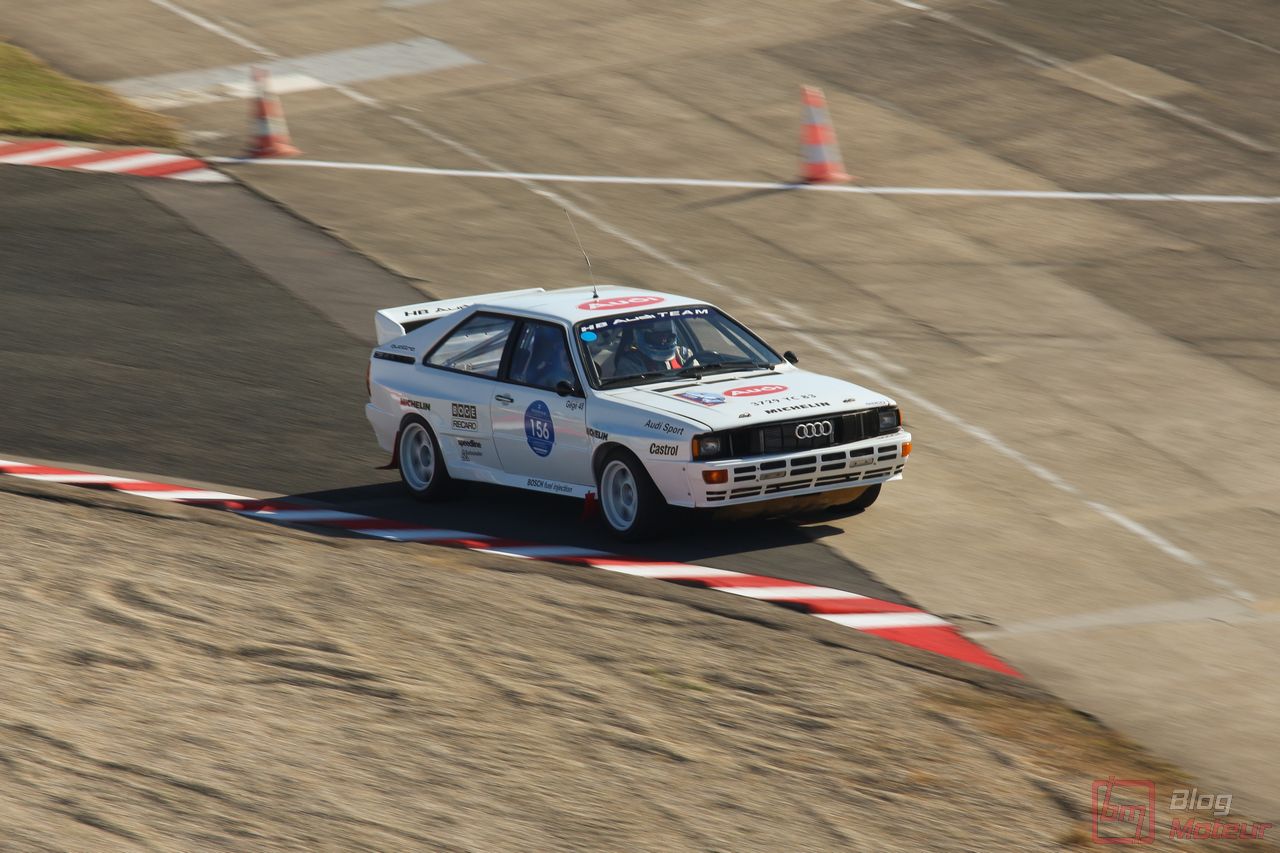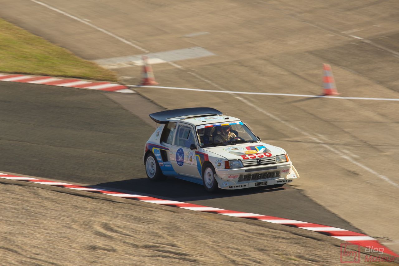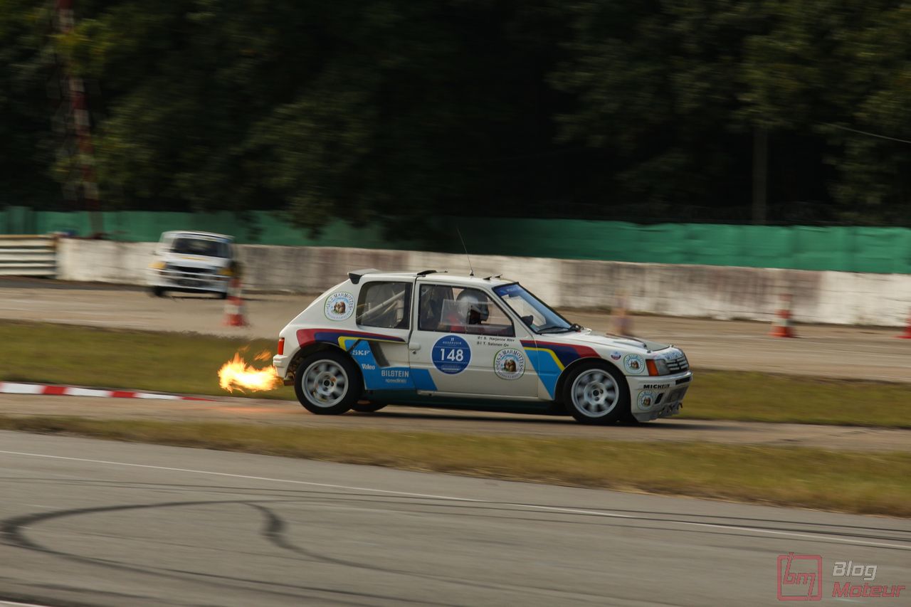 Mais Les Grandes Heures ne se limitent pas qu’au statique, oh non ! 🙂 C’est aussi et surtout du dynamique, sur le circuit événements « 3.405 » mixant une partie du routier et de l’anneau. Stars de l’édition précédents, les mythiques autos de rallye de Groupe B étaient à nouveau à l’affiche cette année. 205 T16 Evo 2 explosive, et notamment celle menée de main de maître par Bruno Saby, Audi Quattro et son mythique 5 cylindres, Renault R5 Turbo, Opel Manta ne se privant pas de glisser … Elles faisaient encore le spectacle … surtout de nuit !! Échappements rougissants, voire crachant des flammes : ambiance !