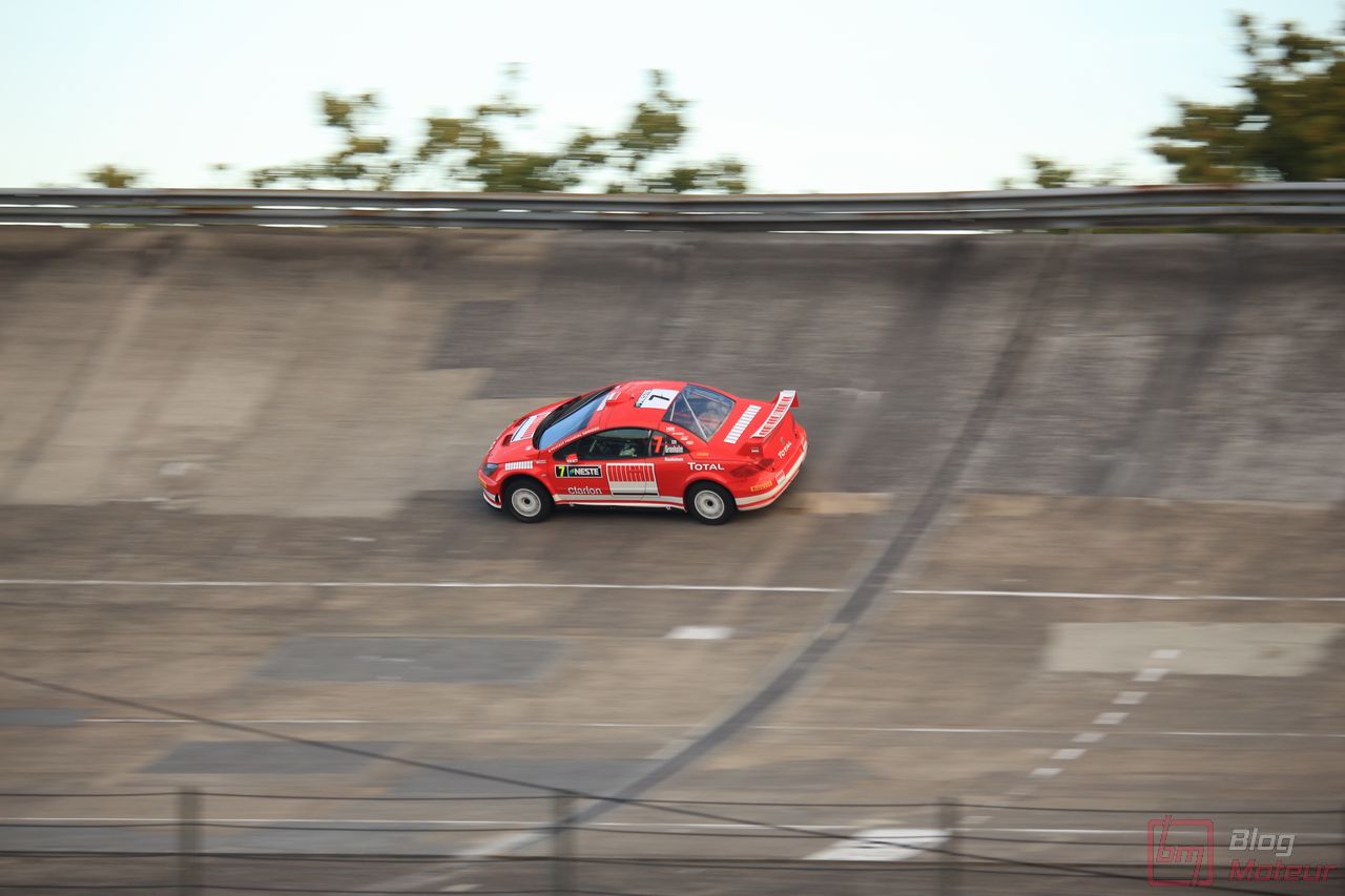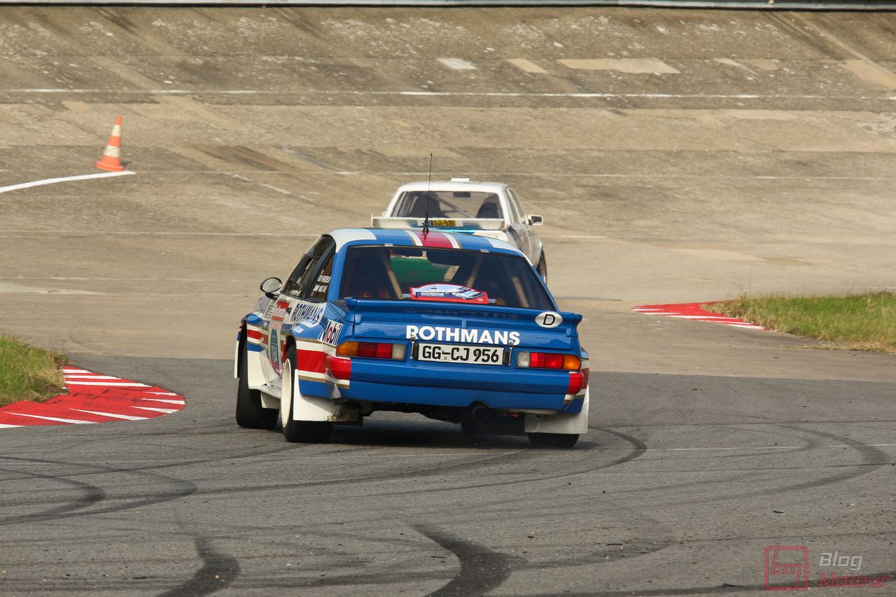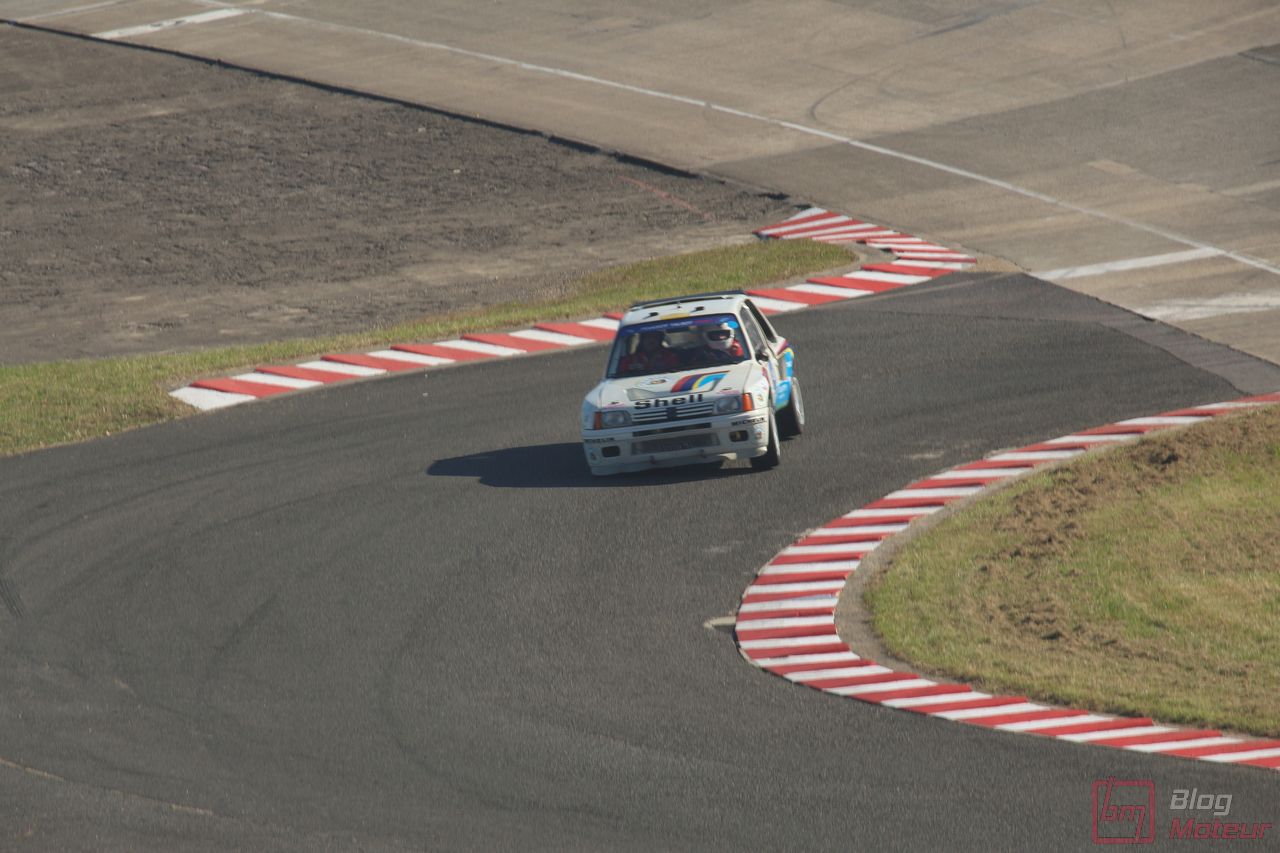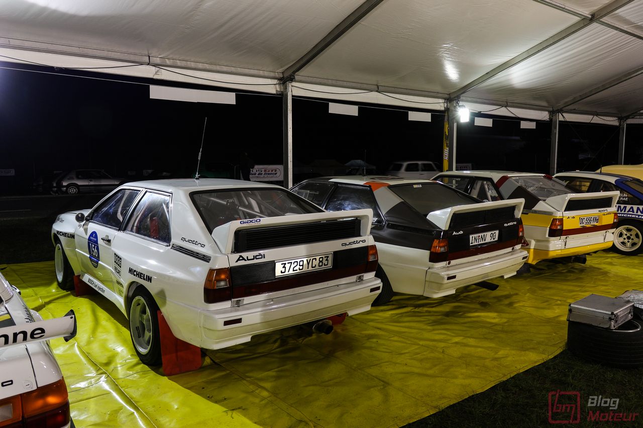 Mais Les Grandes Heures ne se limitent pas qu’au statique, oh non ! 🙂 C’est aussi et surtout du dynamique, sur le circuit événements « 3.405 » mixant une partie du routier et de l’anneau. Stars de l’édition précédents, les mythiques autos de rallye de Groupe B étaient à nouveau à l’affiche cette année. 205 T16 Evo 2 explosive, et notamment celle menée de main de maître par Bruno Saby, Audi Quattro et son mythique 5 cylindres, Renault R5 Turbo, Opel Manta ne se privant pas de glisser … Elles faisaient encore le spectacle … surtout de nuit !! Échappements rougissants, voire crachant des flammes : ambiance !