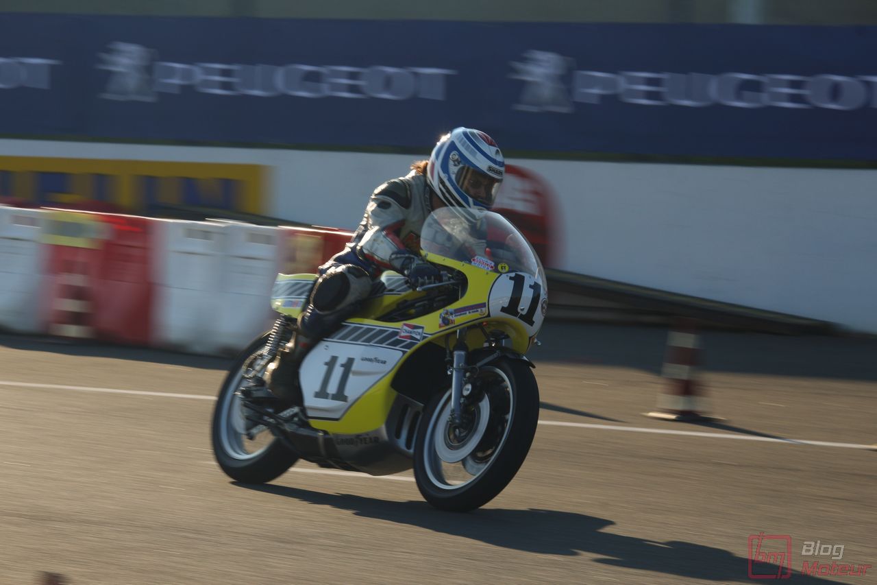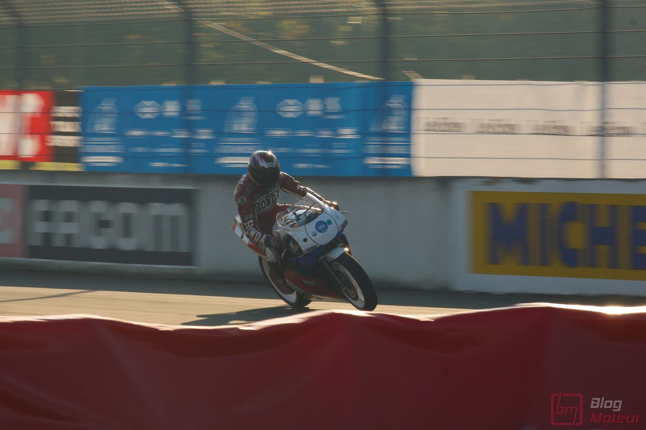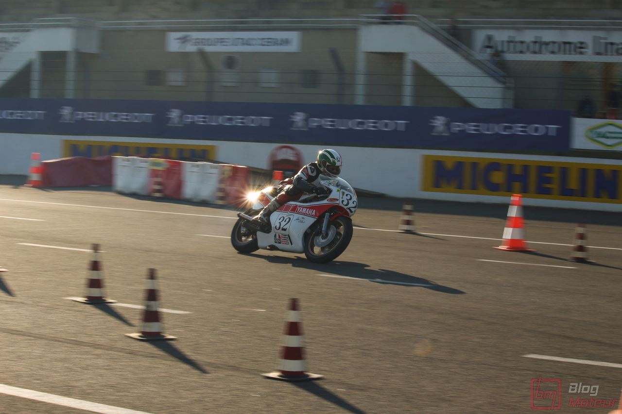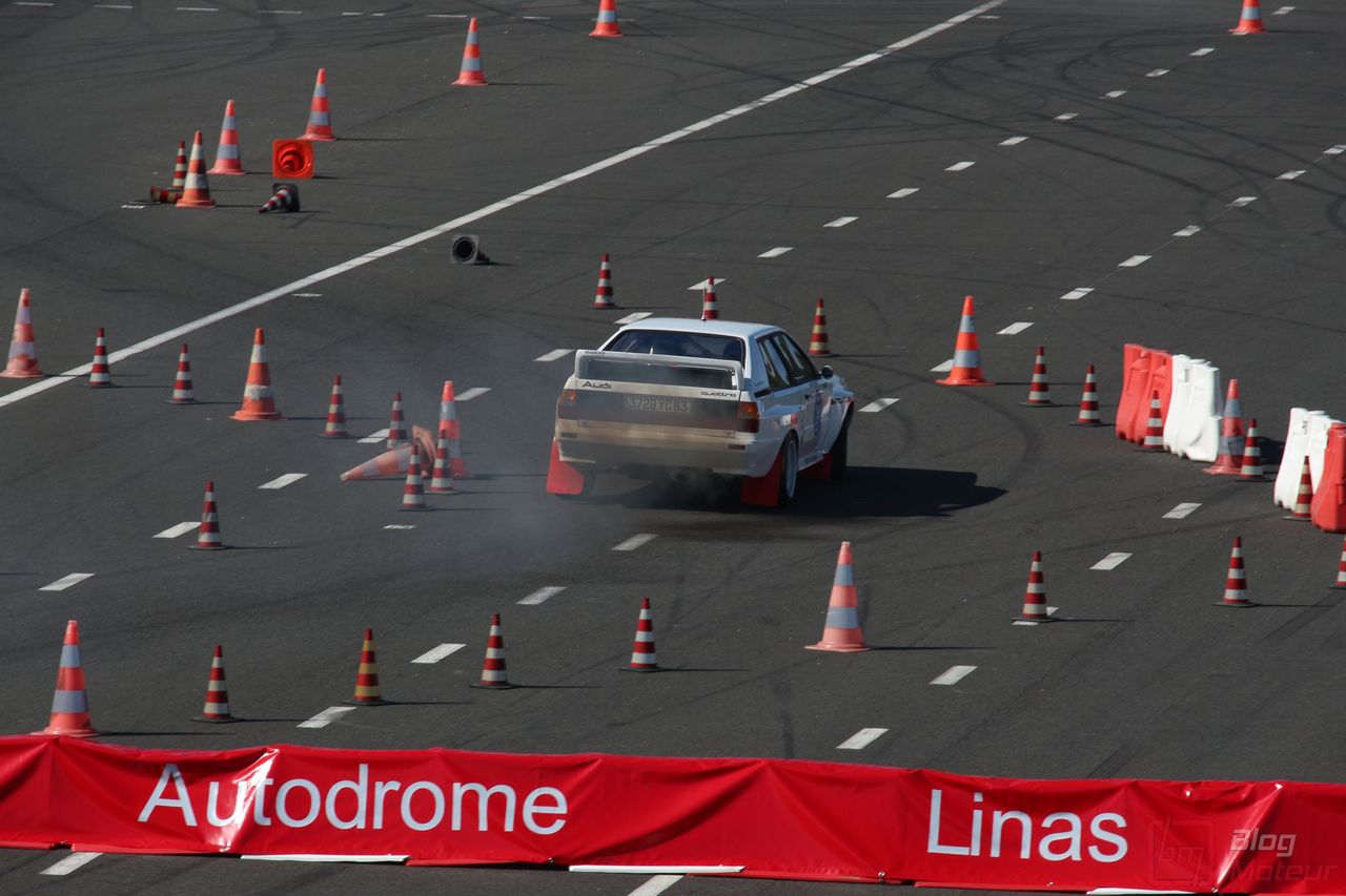 Mais Les Grandes Heures ne se limitent pas qu’au statique, oh non ! 🙂 C’est aussi et surtout du dynamique, sur le circuit événements « 3.405 » mixant une partie du routier et de l’anneau. Stars de l’édition précédents, les mythiques autos de rallye de Groupe B étaient à nouveau à l’affiche cette année. 205 T16 Evo 2 explosive, et notamment celle menée de main de maître par Bruno Saby, Audi Quattro et son mythique 5 cylindres, Renault R5 Turbo, Opel Manta ne se privant pas de glisser … Elles faisaient encore le spectacle … surtout de nuit !! Échappements rougissants, voire crachant des flammes : ambiance !