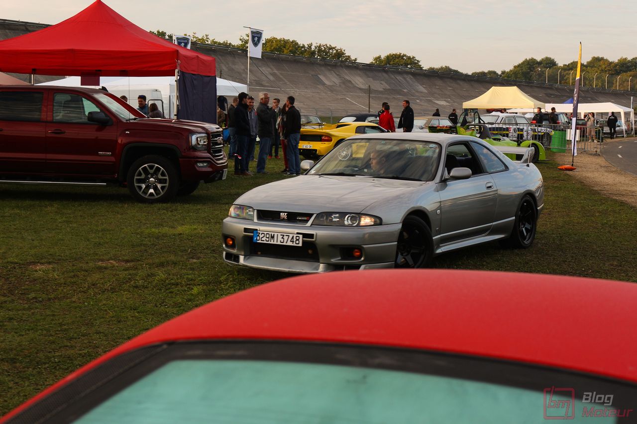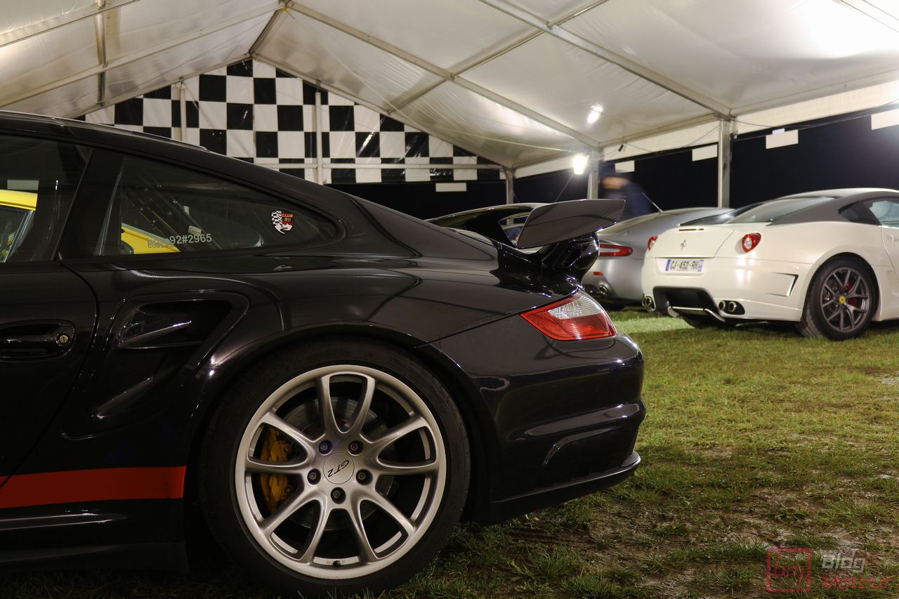 Les amateurs de plus récentes en avaient aussi pour leur argent avec de belles autos des « Alexmolik Supercar Series » ; l’ami Alexandre, bien connu depuis ses débuts en spotting parisien, organisait alors un plateau exclusif de modernes : Mustang Shelby GT-350 R, F12, 599 GTB, 911 GT2>3, GT-R, DB9 Volante, C 63 AMG Coupé Black Series, Corvette C7 … Des autos qui avaient comme les autres diverses sessions de roulage, comme au petit matin du dimanche … Ambiance ! (oui, je le répète … 🙂 )