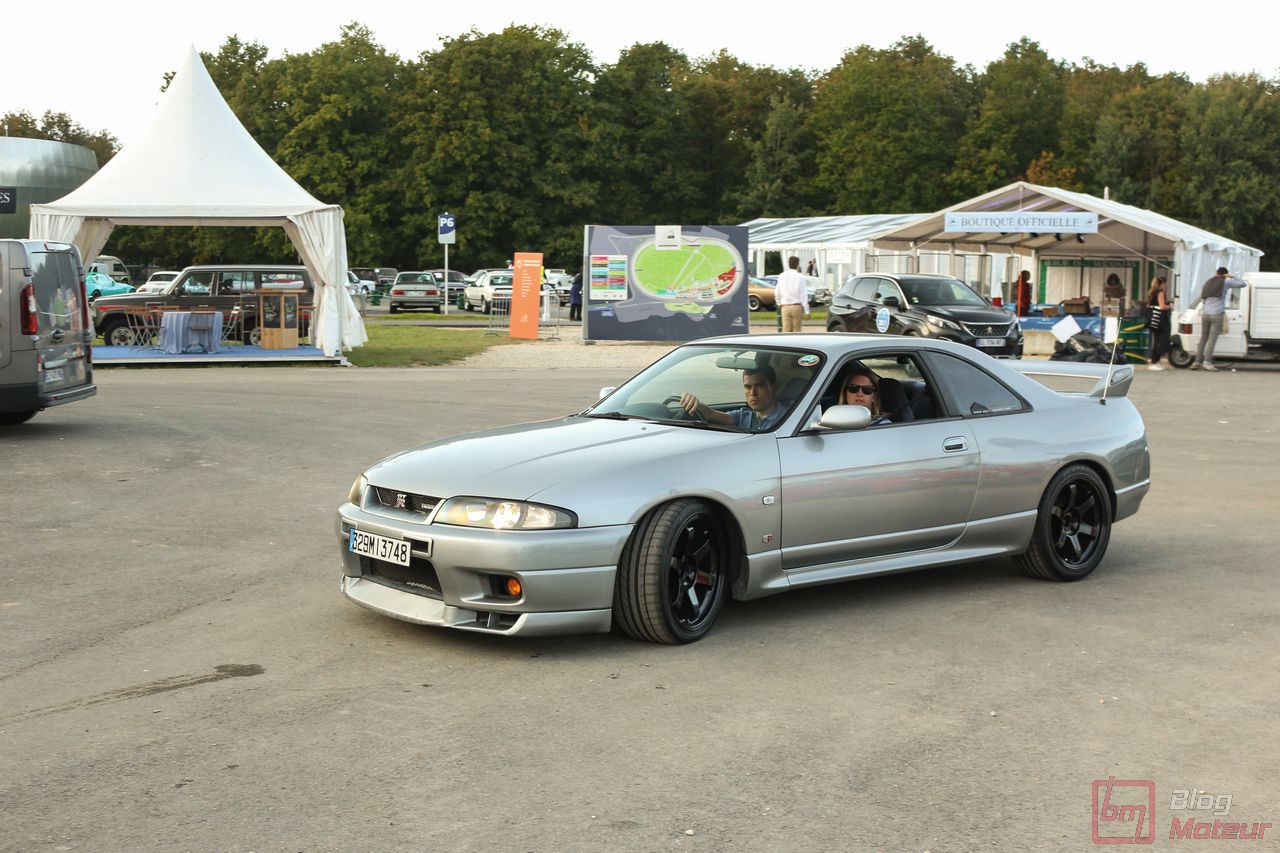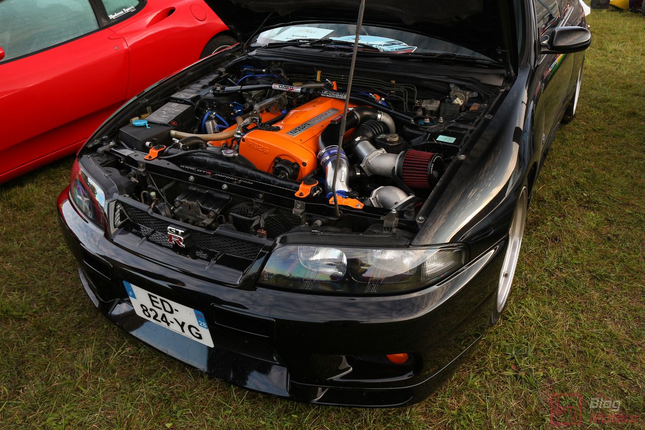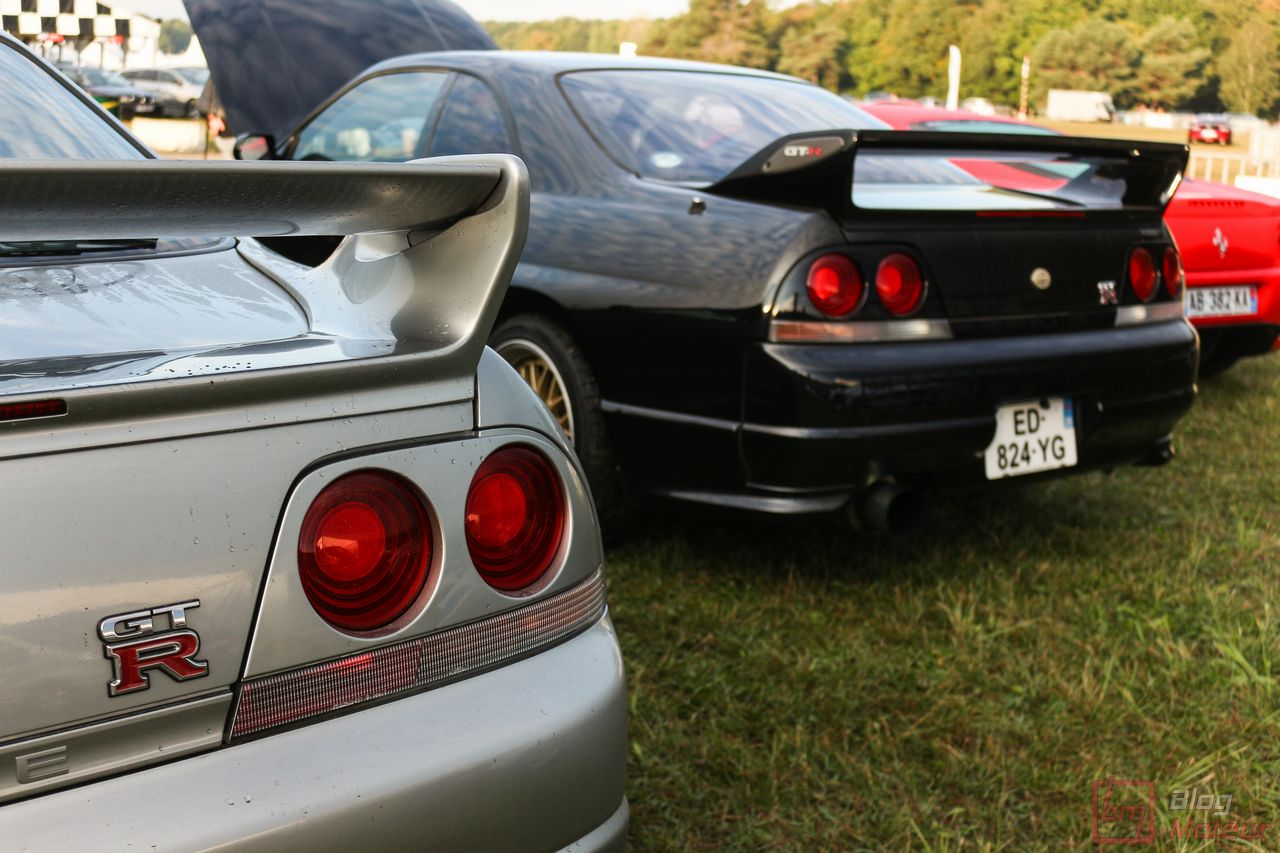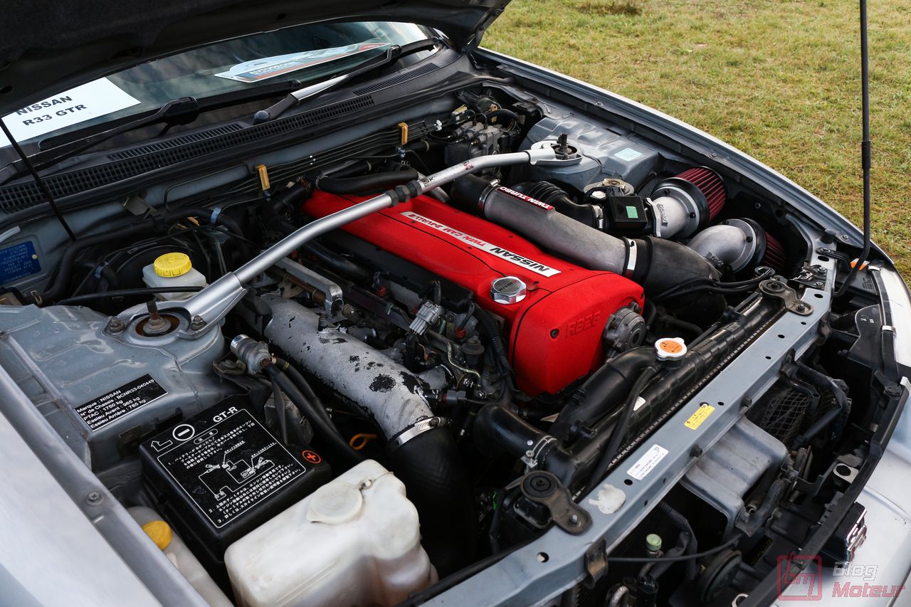 Faisons un zoom sur deux rares (en France) Nissan Skyline R33 GT-R ! La grise est une phase 3 de 1997, la noire une phase 1 V-spec à moteur forgé. 2708 exemplaires de phase 3 sur 16 250 GT-R produites … cette belle grise serait une des six seules françaises ! Officiellement bridée au Japon à 280 ch, avec un moteur naturellement « généreux », l’auto approcherait plutôt les 380 ch, libérés avec fougue de son six-cylindres biturbo et canalisés par quatre roues motrices et directrices ! Si nos lecteurs fans de japonaises rêvent d’en voir plus, n’hésitez pas à nous le dire ; on est proches de l’affaire 🙂