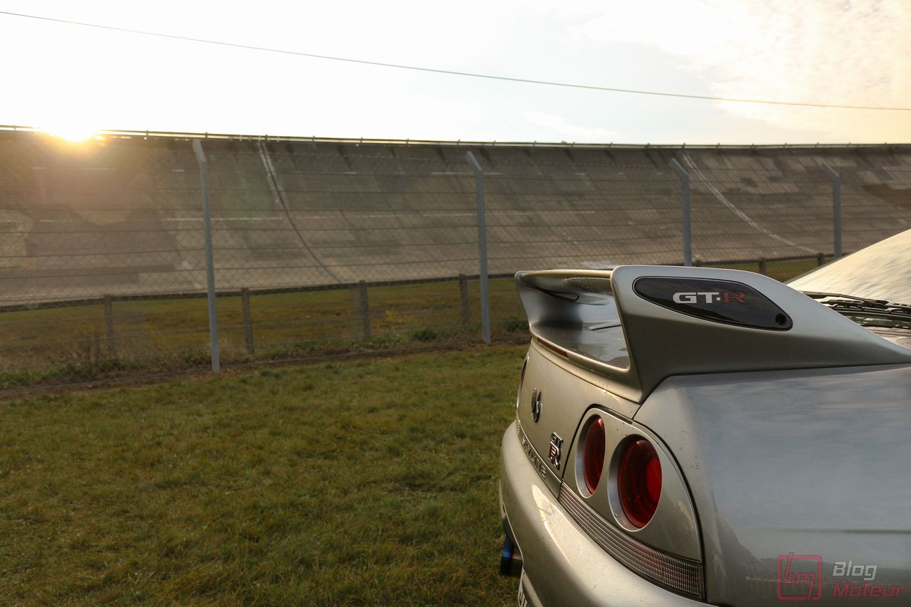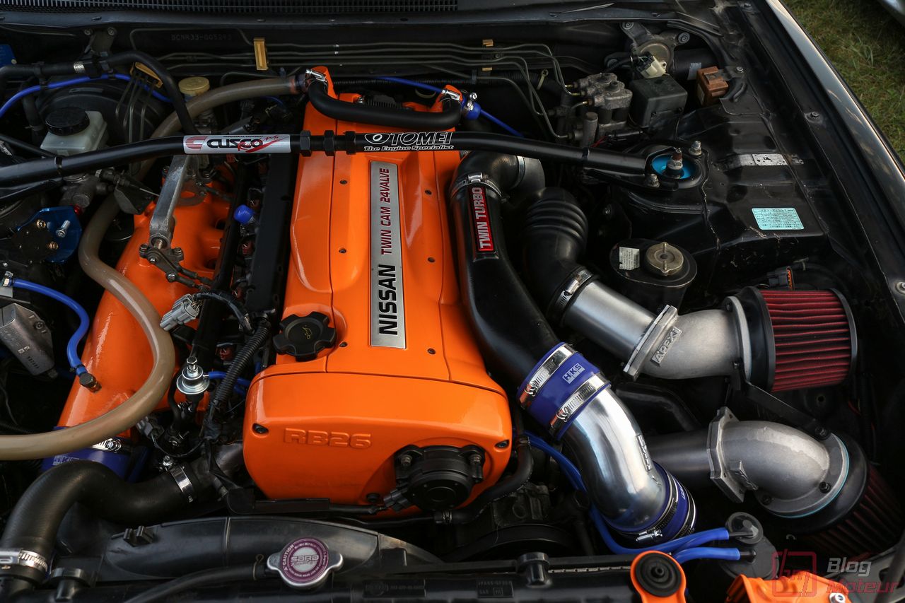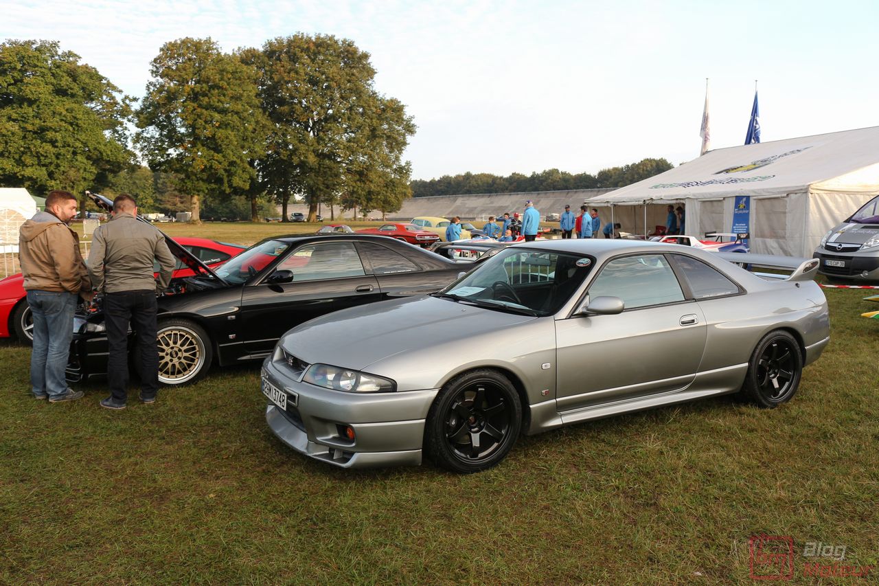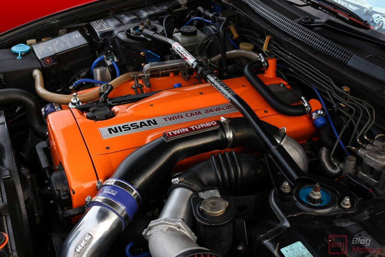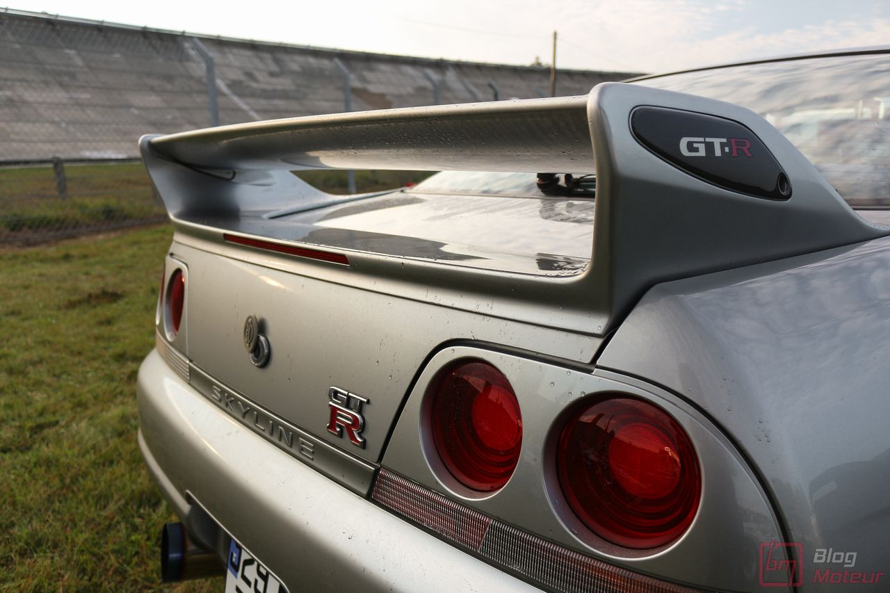 Faisons un zoom sur deux rares (en France) Nissan Skyline R33 GT-R ! La grise est une phase 3 de 1997, la noire une phase 1 V-spec à moteur forgé. 2708 exemplaires de phase 3 sur 16 250 GT-R produites … cette belle grise serait une des six seules françaises ! Officiellement bridée au Japon à 280 ch, avec un moteur naturellement « généreux », l’auto approcherait plutôt les 380 ch, libérés avec fougue de son six-cylindres biturbo et canalisés par quatre roues motrices et directrices ! Si nos lecteurs fans de japonaises rêvent d’en voir plus, n’hésitez pas à nous le dire ; on est proches de l’affaire 🙂