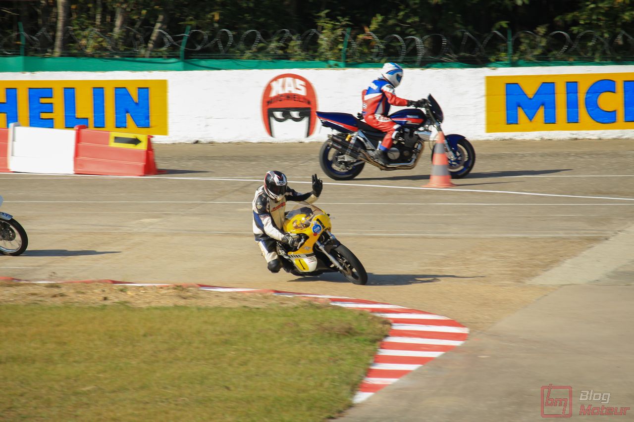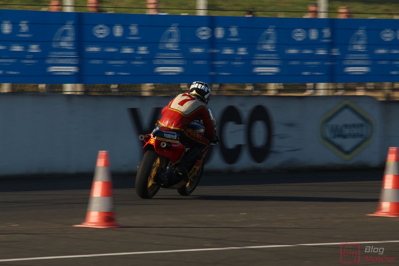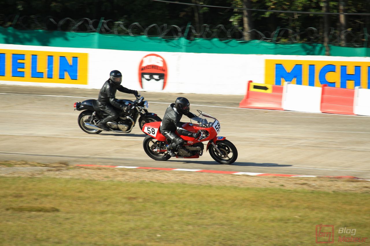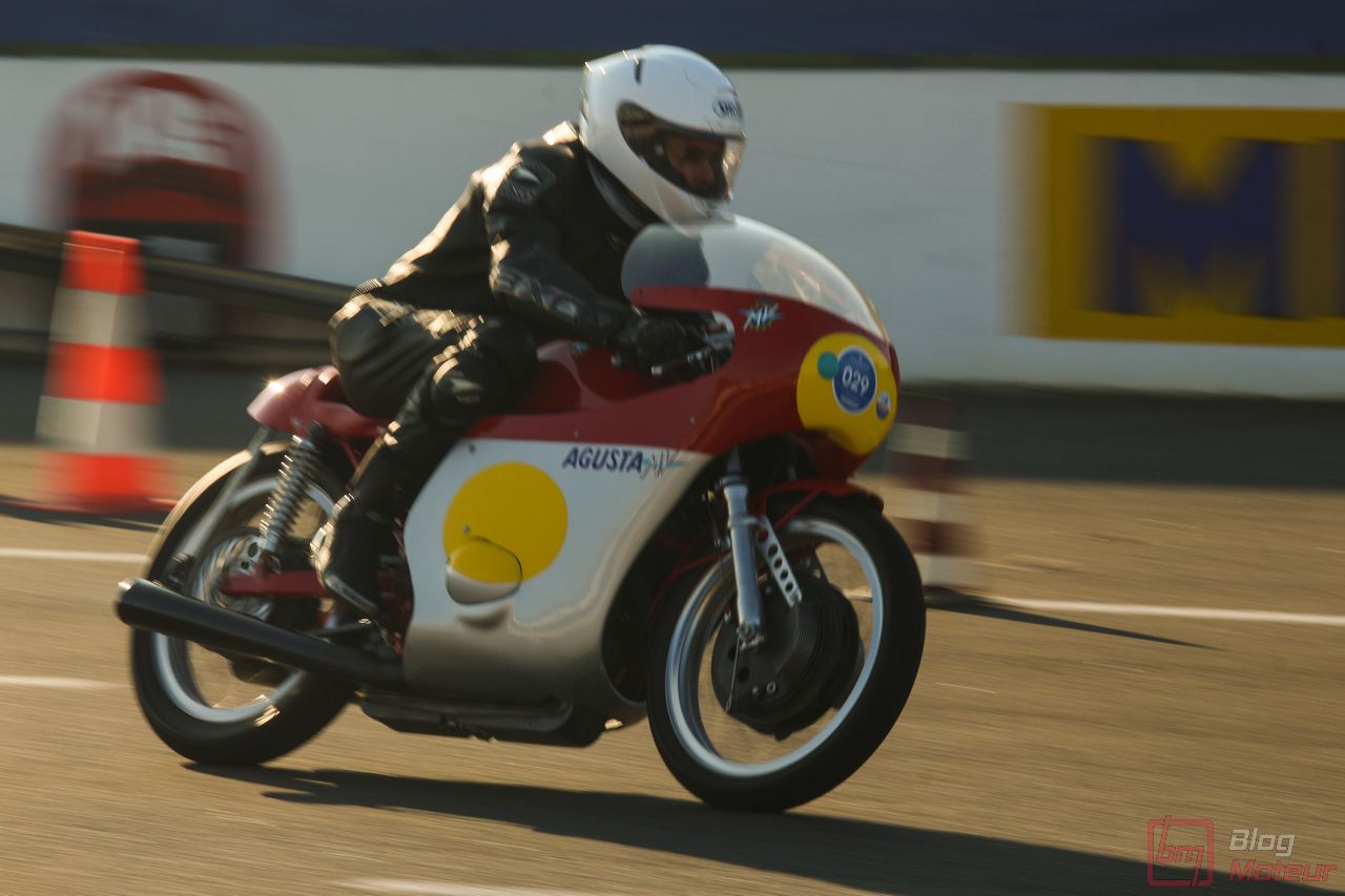 « Orf, moi je trouve ça d’une fadeur ces choses à quatre roues ! » Eh bien, toi, ami motard, tu avais aussi un spectacle à ton goût ! Anciennes, ou plus modernes, des hurlements extraordinaires d’une MV Agusta à cette Norton aux trajectoires aiguisées … là encore, un show de qualité ! …
