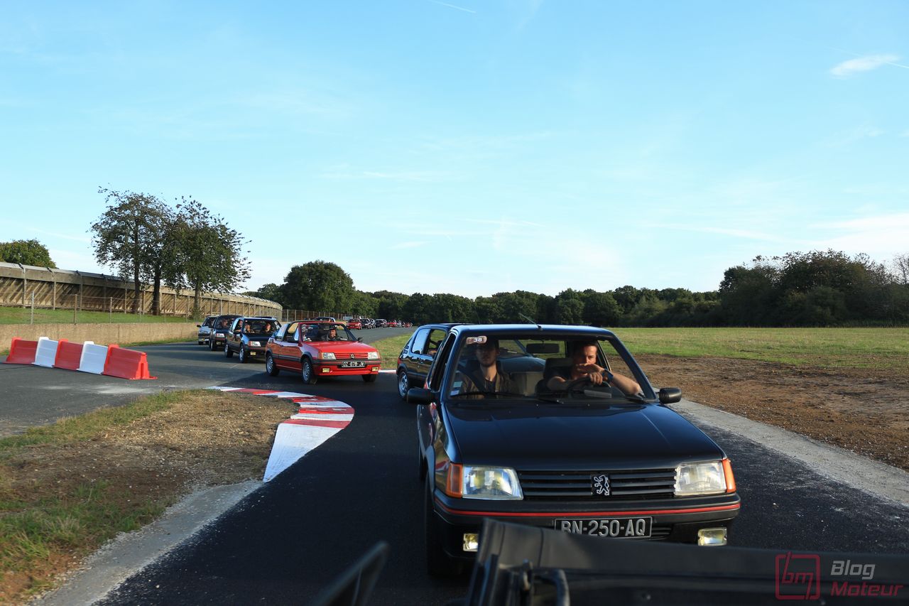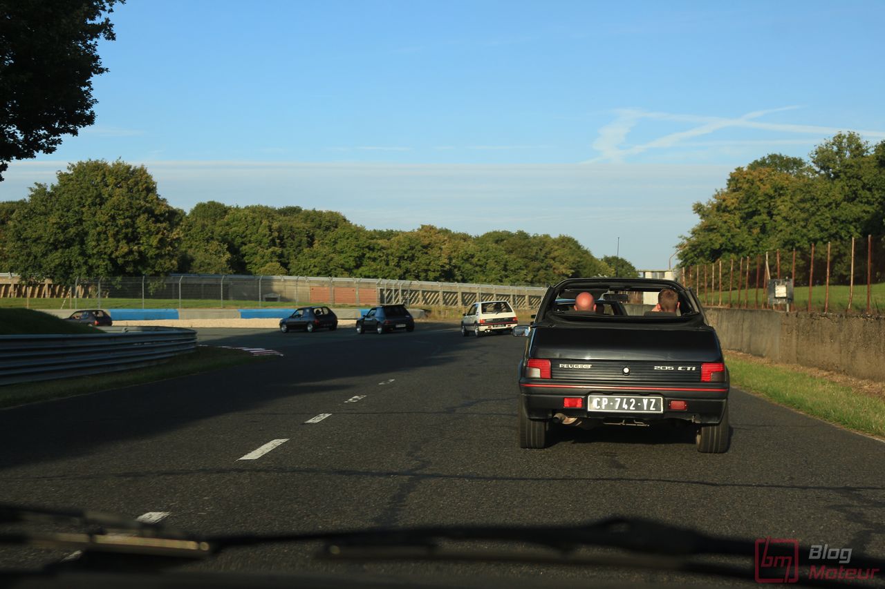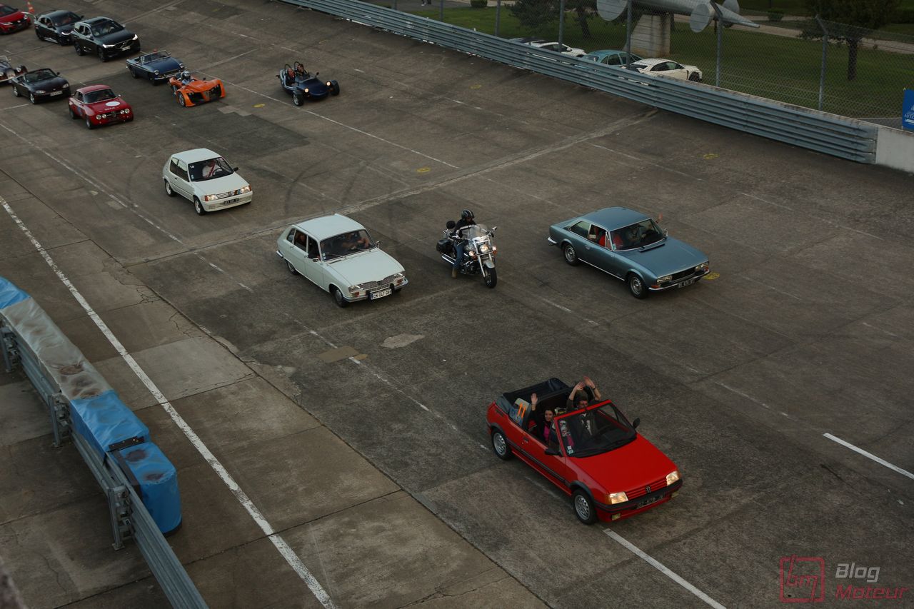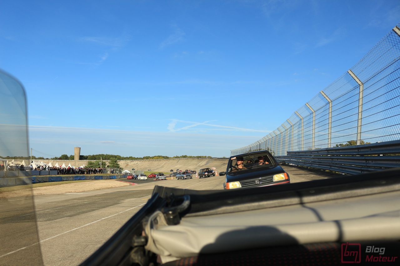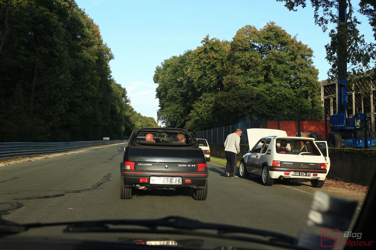 Pendant cette balade sur les « parkings exposants », on croise nos amis du Club 205 GTi Powers qui embarquent dans leurs 205 pour la parade Peugeot ! Par chance, on me propose une place dans une belle 205 CTi 1.9 ! Montées en régime plutôt rageuses, et un atmo « d’antan » qui réclame les hautes régimes pour bien marcher ! On parle aujourd’hui de 300, 400 ch sur des compactes … mais une centaine de chevaux sur une petite auto légère et agile suffisaient largement au bonheur des apprentis pilotes à l’époque ! Un régal … Une auto à rajouter à notre liste au Père Noël, mais il faut se dépêcher, la cote monte ! 😉