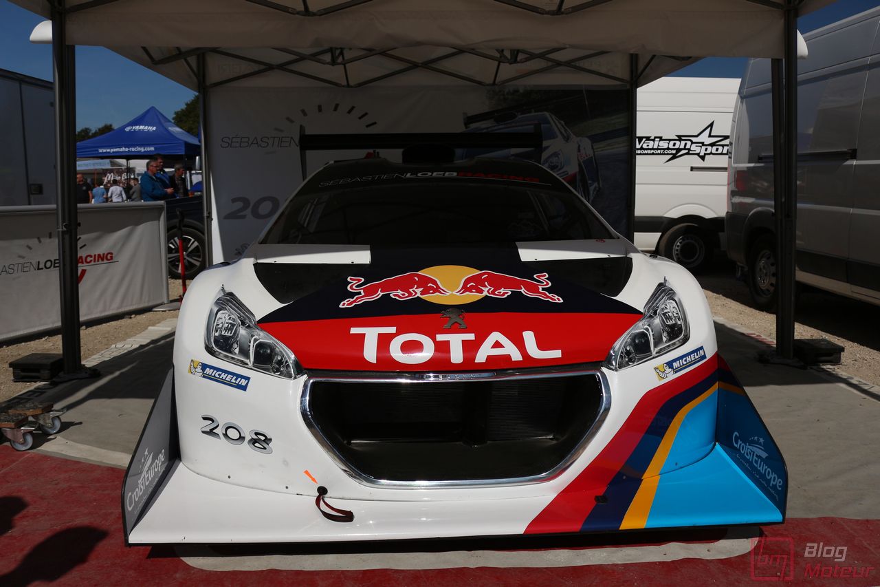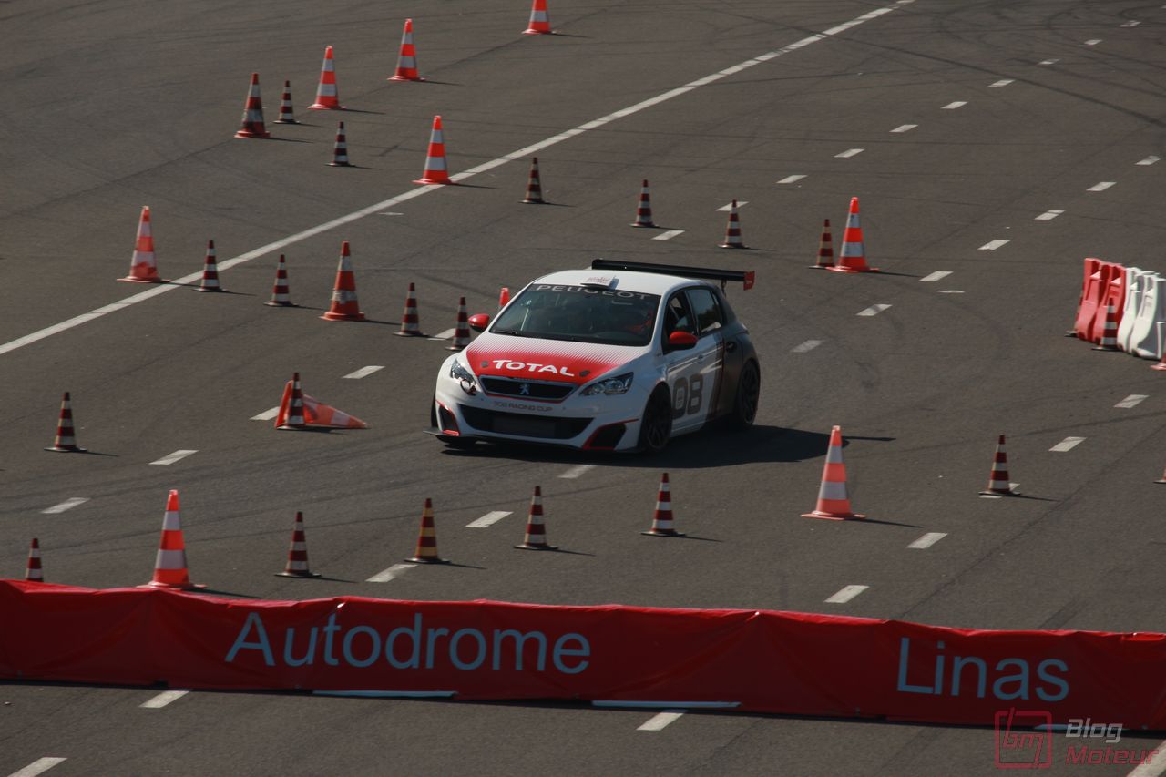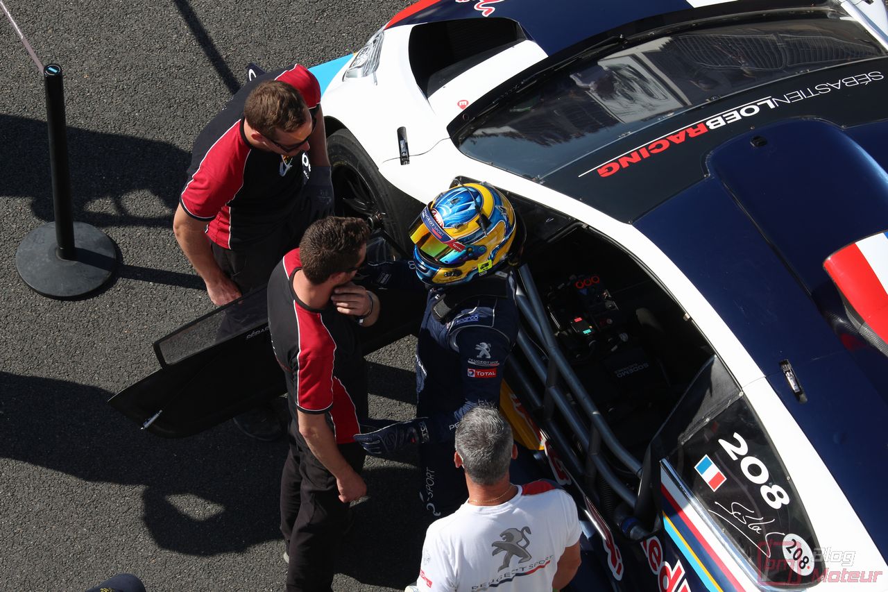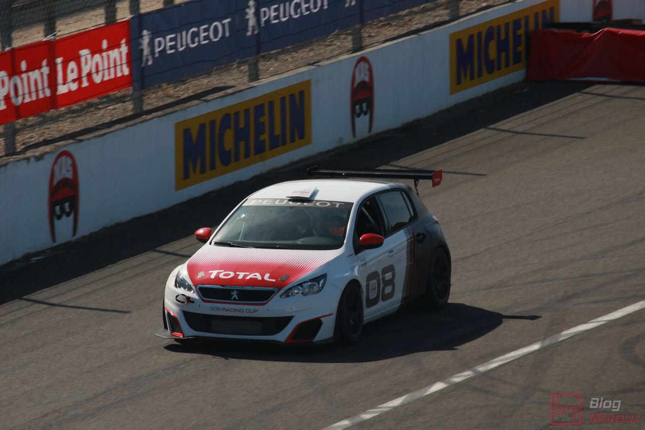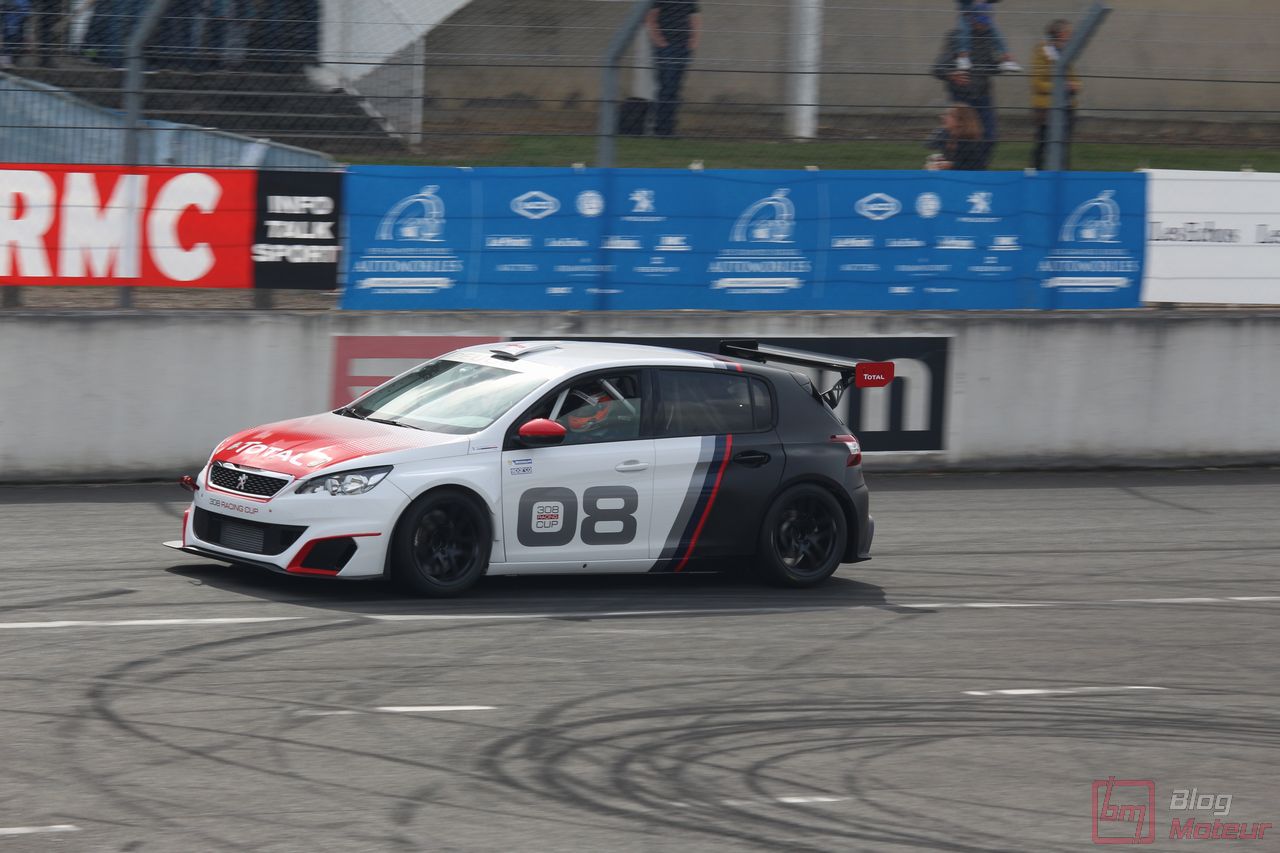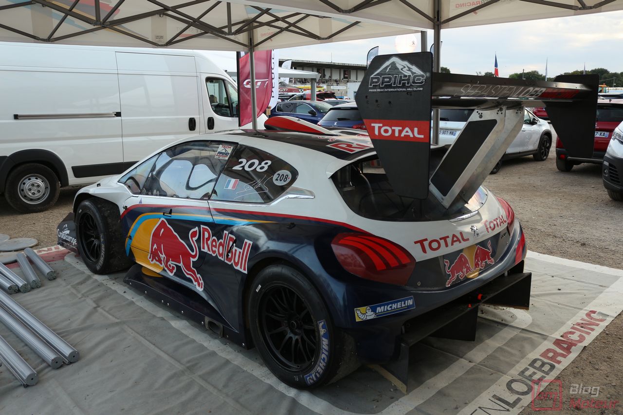 Mais il semblerait qu’une auto, faisant vibrer les paddocks et la tour de contrôle depuis quelques minutes, ne soit pas encore allée se dégourdir les roues ! Une auto ? Un monstre plutôt ! La 208 T16 Pikes Peak prend en effet doucement sa bonne température de fonctionnement. 875 ch pour 875 kg, et un 0 à 100 en 1,8 s, des performances ahurissantes pour initialement attaquer la montée de Pikes Peak. Pour que le spectacle soit parfait, il fallait bien retrouver la performance d’acteur de pilote de Sébastien Loeb, désormais propriétaire de cette auto ! Un invité spécial pour la journée de samedi, pour le plus grand plaisir des fans, venus nombreux ! Nous aurons même eu l’immense chance d’avoir un échange en petits groupes avec notre héros automobile national … un grand moment ! Sébastien Loeb nous confirmait sa passion indéfectible pour le monde du Rallye, sa discipline-phare (alors qu’il venait d’effectuer des essais avec Citroën Racing ; il devrait réaliser quelques rallyes de la saison prochaine), mais nous confiait aussi son enthousiasme pour le Rallycross. La page du Dakar, ayant permis de jolis résultats et favorisant la promotion des SUVs de la marque, se tourne doucement ; le Rallycross permettant de voir au plus près de la série, une 208 WRX plus compétitive que jamais avec le soutien renforcé de Peugeot Sport l’an prochain. Dans le même ordre d’idée, la 308 Racing Cup est le porte-drapeau image de la gamme 308 à succès, au-dessus de la 308 GTi récemment faceliftée (on en reparle plus bas) ; ses performances ravissent autant les pilotes que la marque, en progression constante !