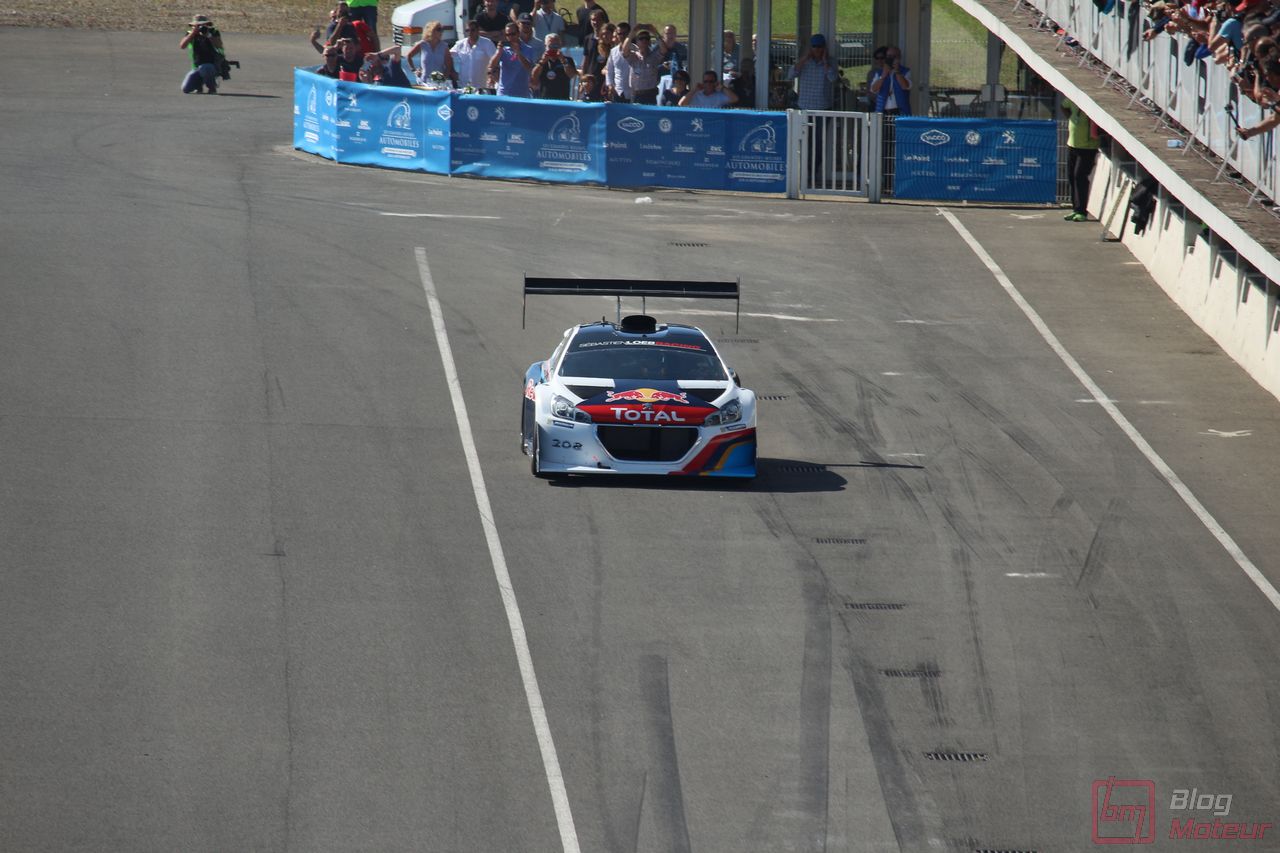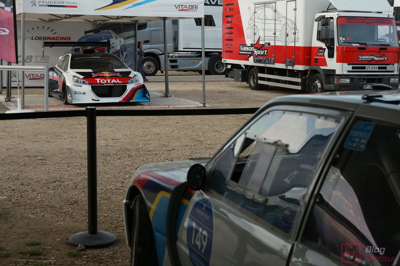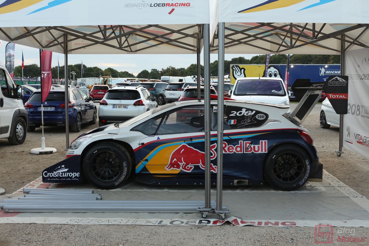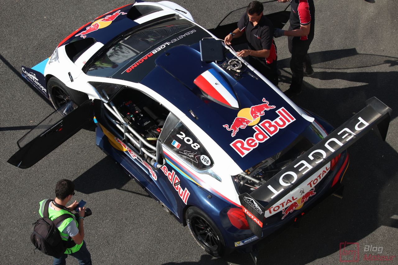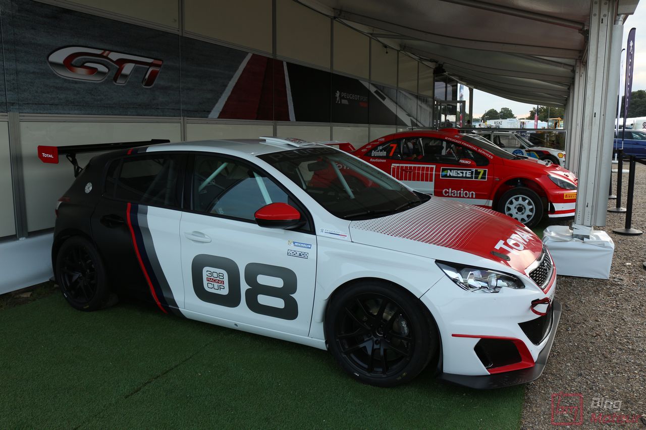 Mais il semblerait qu’une auto, faisant vibrer les paddocks et la tour de contrôle depuis quelques minutes, ne soit pas encore allée se dégourdir les roues ! Une auto ? Un monstre plutôt ! La 208 T16 Pikes Peak prend en effet doucement sa bonne température de fonctionnement. 875 ch pour 875 kg, et un 0 à 100 en 1,8 s, des performances ahurissantes pour initialement attaquer la montée de Pikes Peak. Pour que le spectacle soit parfait, il fallait bien retrouver la performance d’acteur de pilote de Sébastien Loeb, désormais propriétaire de cette auto ! Un invité spécial pour la journée de samedi, pour le plus grand plaisir des fans, venus nombreux ! Nous aurons même eu l’immense chance d’avoir un échange en petits groupes avec notre héros automobile national … un grand moment ! Sébastien Loeb nous confirmait sa passion indéfectible pour le monde du Rallye, sa discipline-phare (alors qu’il venait d’effectuer des essais avec Citroën Racing ; il devrait réaliser quelques rallyes de la saison prochaine), mais nous confiait aussi son enthousiasme pour le Rallycross. La page du Dakar, ayant permis de jolis résultats et favorisant la promotion des SUVs de la marque, se tourne doucement ; le Rallycross permettant de voir au plus près de la série, une 208 WRX plus compétitive que jamais avec le soutien renforcé de Peugeot Sport l’an prochain. Dans le même ordre d’idée, la 308 Racing Cup est le porte-drapeau image de la gamme 308 à succès, au-dessus de la 308 GTi récemment faceliftée (on en reparle plus bas) ; ses performances ravissent autant les pilotes que la marque, en progression constante !