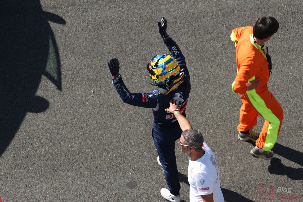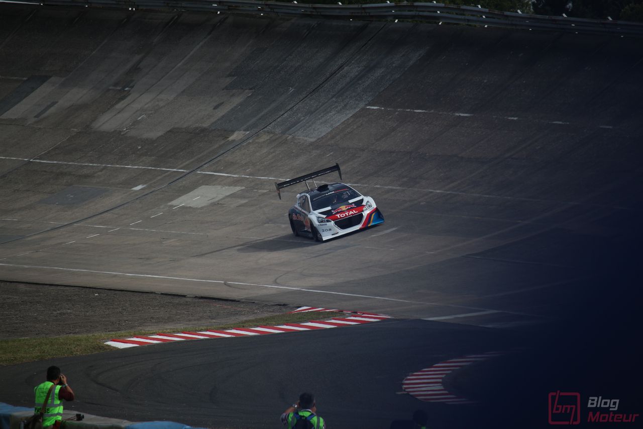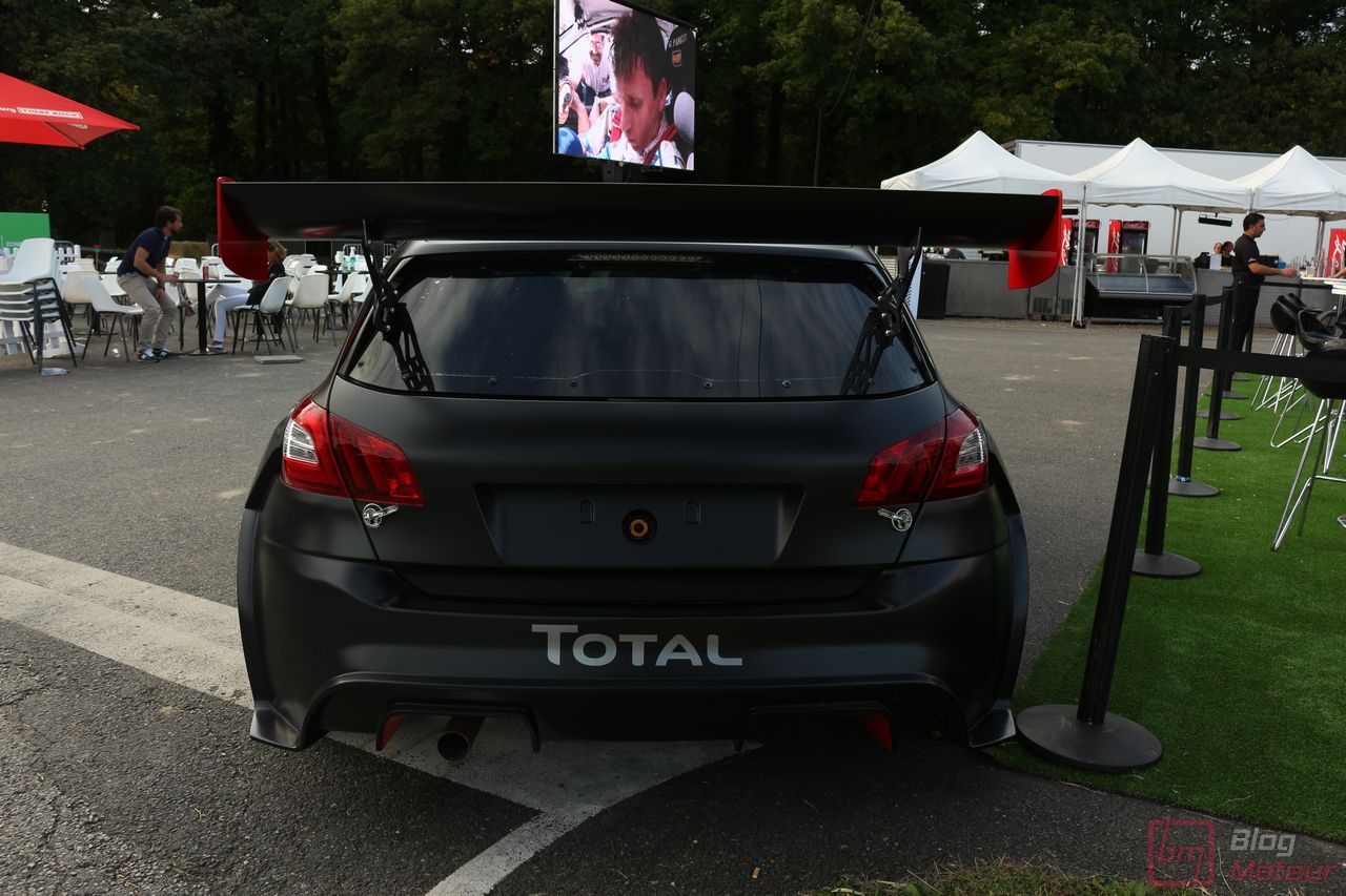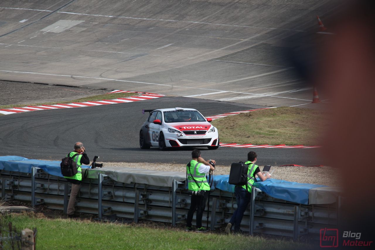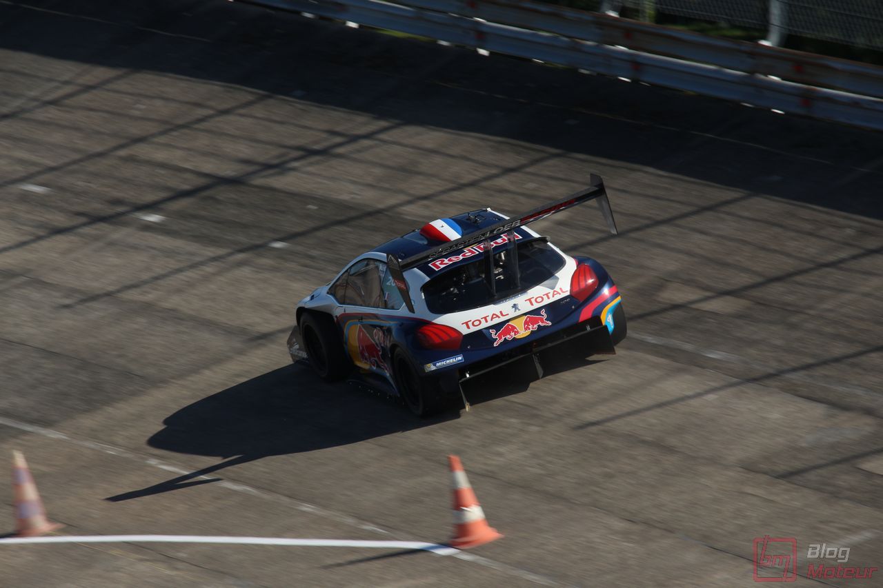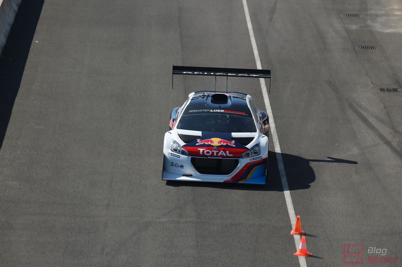 Mais il semblerait qu’une auto, faisant vibrer les paddocks et la tour de contrôle depuis quelques minutes, ne soit pas encore allée se dégourdir les roues ! Une auto ? Un monstre plutôt ! La 208 T16 Pikes Peak prend en effet doucement sa bonne température de fonctionnement. 875 ch pour 875 kg, et un 0 à 100 en 1,8 s, des performances ahurissantes pour initialement attaquer la montée de Pikes Peak. Pour que le spectacle soit parfait, il fallait bien retrouver la performance d’acteur de pilote de Sébastien Loeb, désormais propriétaire de cette auto ! Un invité spécial pour la journée de samedi, pour le plus grand plaisir des fans, venus nombreux ! Nous aurons même eu l’immense chance d’avoir un échange en petits groupes avec notre héros automobile national … un grand moment ! Sébastien Loeb nous confirmait sa passion indéfectible pour le monde du Rallye, sa discipline-phare (alors qu’il venait d’effectuer des essais avec Citroën Racing ; il devrait réaliser quelques rallyes de la saison prochaine), mais nous confiait aussi son enthousiasme pour le Rallycross. La page du Dakar, ayant permis de jolis résultats et favorisant la promotion des SUVs de la marque, se tourne doucement ; le Rallycross permettant de voir au plus près de la série, une 208 WRX plus compétitive que jamais avec le soutien renforcé de Peugeot Sport l’an prochain. Dans le même ordre d’idée, la 308 Racing Cup est le porte-drapeau image de la gamme 308 à succès, au-dessus de la 308 GTi récemment faceliftée (on en reparle plus bas) ; ses performances ravissent autant les pilotes que la marque, en progression constante !