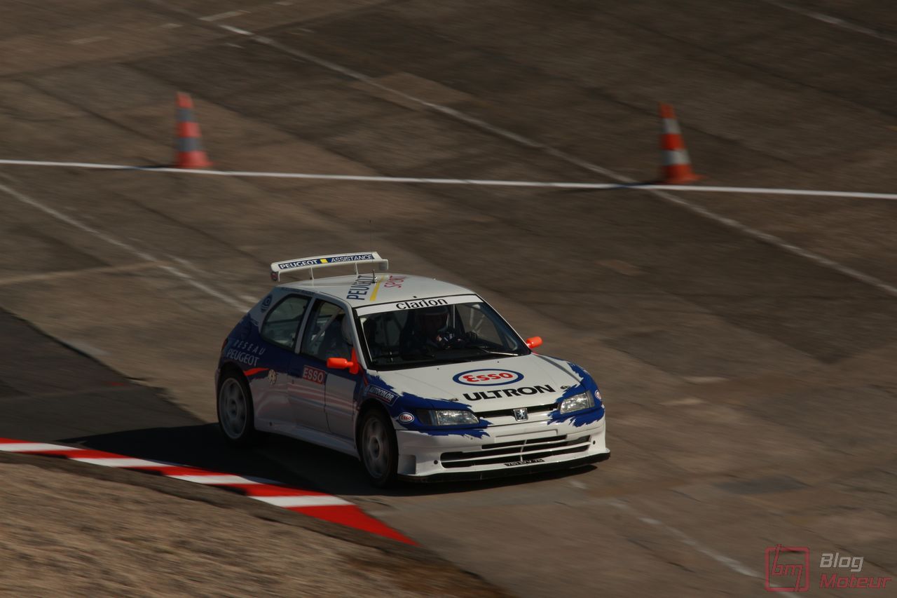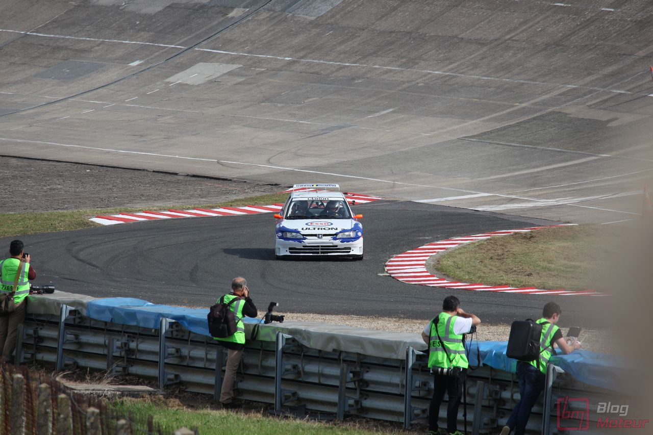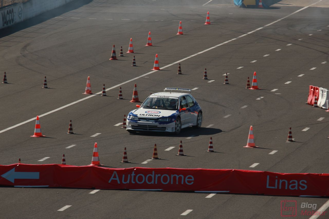 Le speaker s’affole : des lions rugissent dans les paddocks ! Place au Show Peugeot … Point commun avec les autos de série, plus le temps passe, plus les autos sont silencieuses et performantes ! Aussi, la 306 Maxi nous régale avec la généreuse sonorité de son 2.0 atmosphérique respirant à pleins poumons à haut régime. Suivait la 307 WRC, qui ne se privait pas de faire fumer la gomme (!) et la récente 308 Racing Cup qui a l’habitude de respirer l’air de Montlhéry.