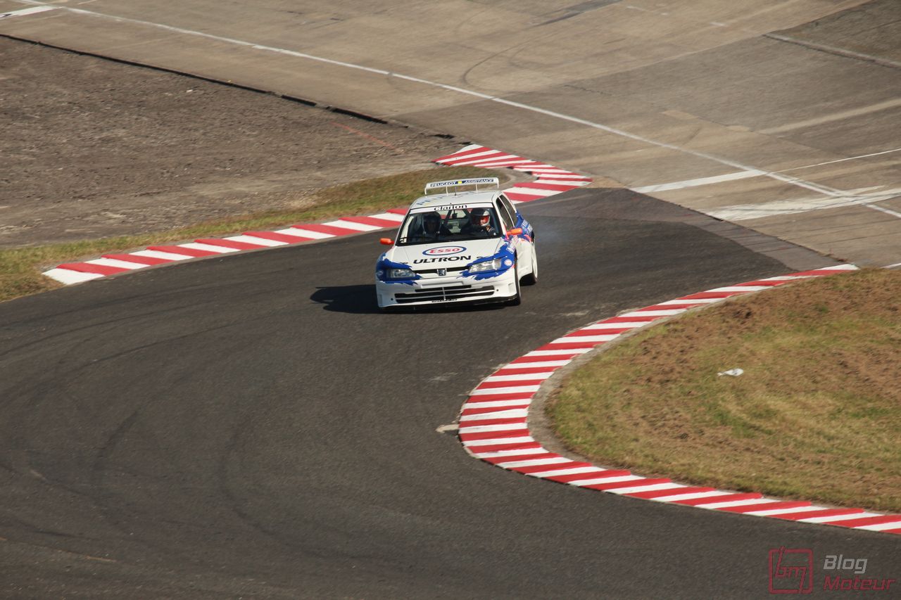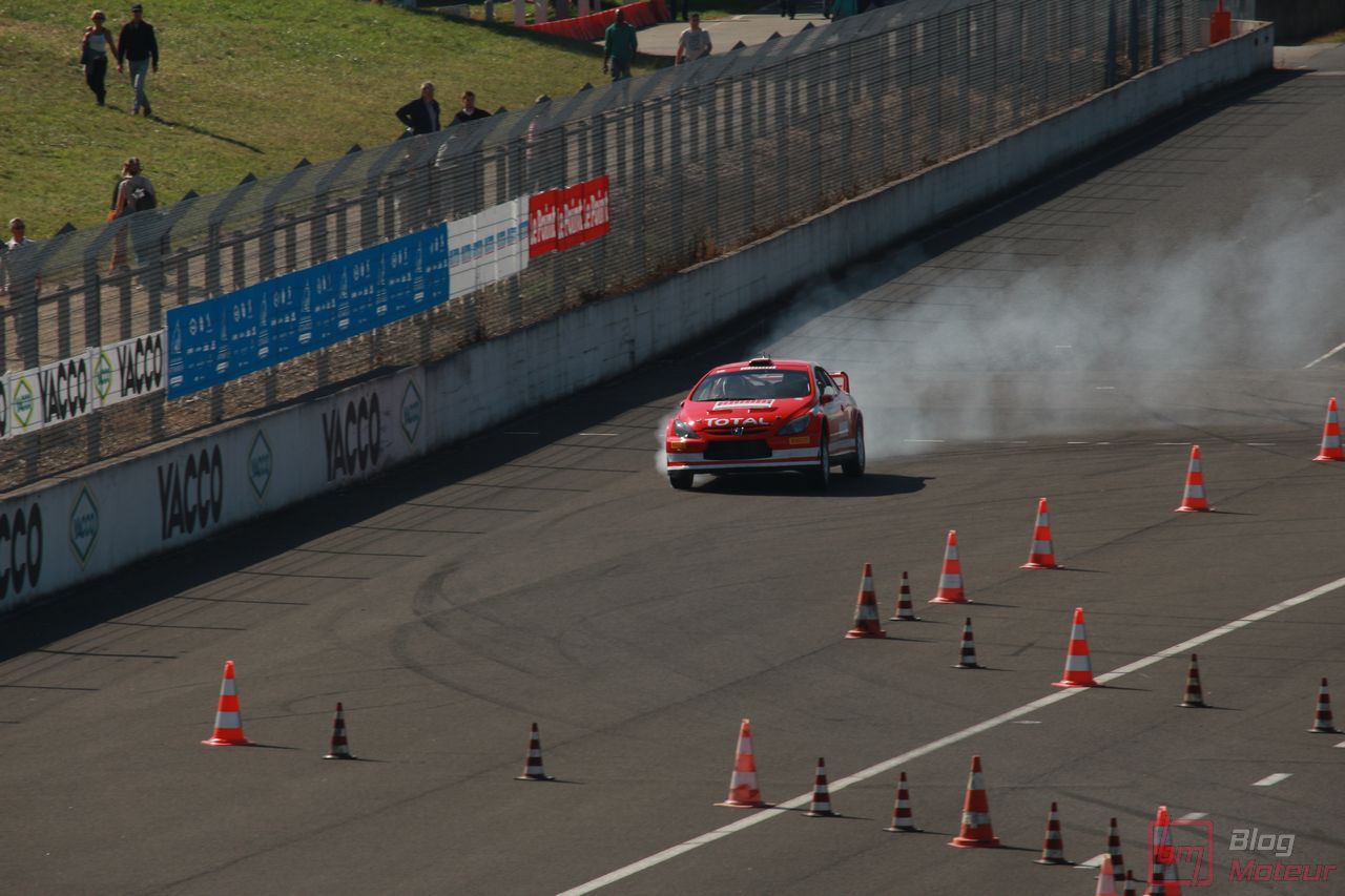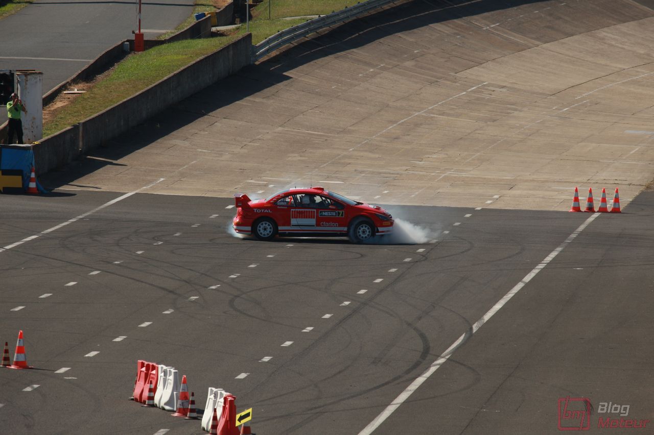 Le speaker s’affole : des lions rugissent dans les paddocks ! Place au Show Peugeot … Point commun avec les autos de série, plus le temps passe, plus les autos sont silencieuses et performantes ! Aussi, la 306 Maxi nous régale avec la généreuse sonorité de son 2.0 atmosphérique respirant à pleins poumons à haut régime. Suivait la 307 WRC, qui ne se privait pas de faire fumer la gomme (!) et la récente 308 Racing Cup qui a l’habitude de respirer l’air de Montlhéry.