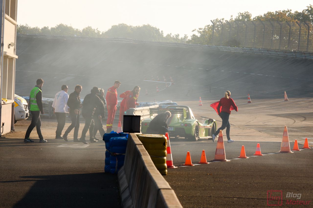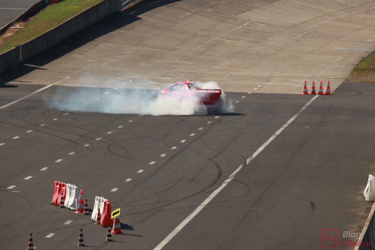 Le dimanche, ce sera au tour de Grégory Guilvert, pilote en R8 LMS notamment en GT Tour, de maîtriser la bête ! Il la connaît tout aussi bien, voire mieux, étant son pilote-développeur … comme toutes les dernières créations Peugeot Sport, série et compétition ! Pilote humble et sympathique, ne cachant pas son enthousiasme à retrouver ce monstre, aux côtés de Bruno Famin, boss de Peugeot Sport et Gaetan Demoulin, alors responsable communication produits et événements presse.