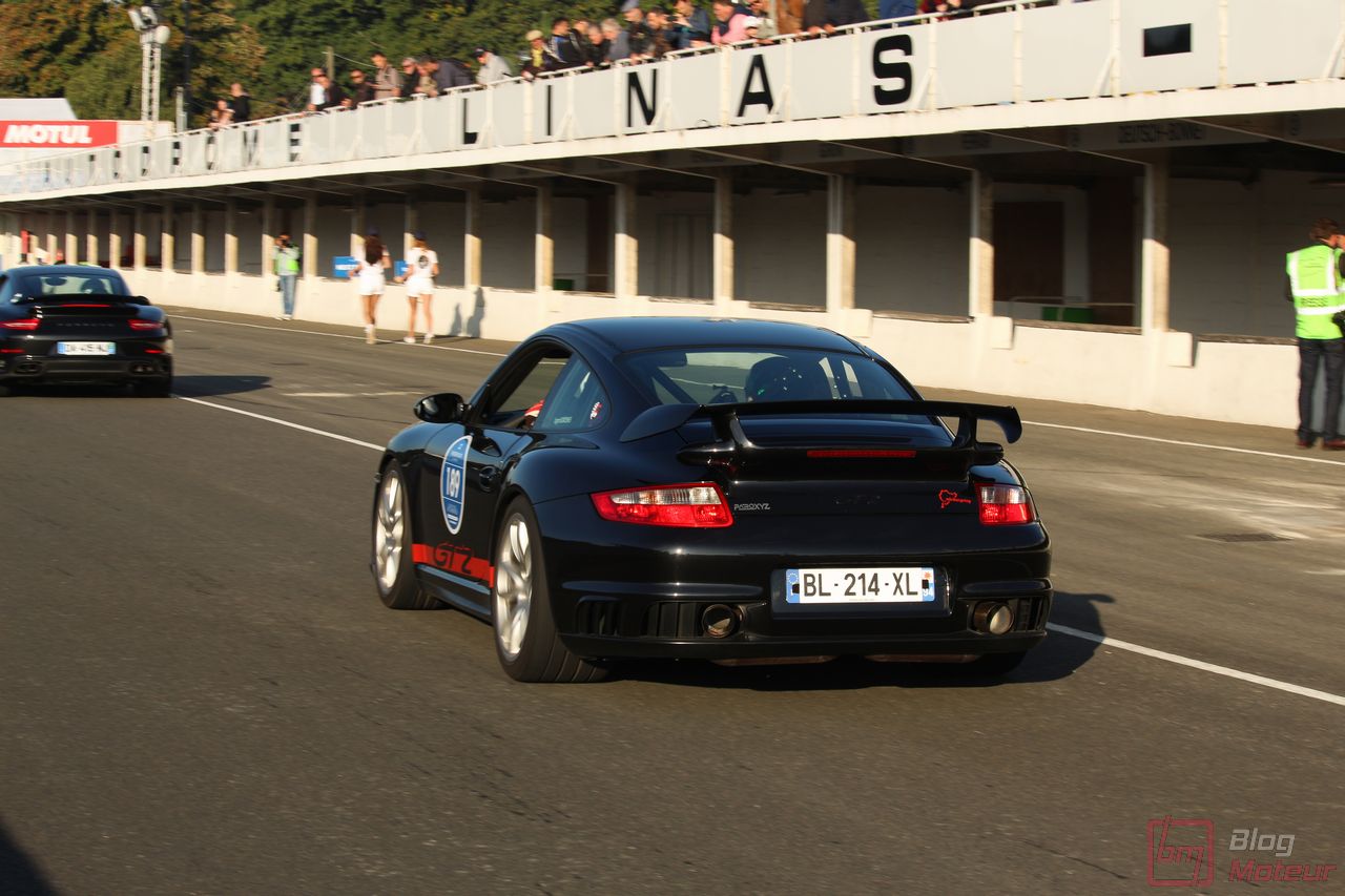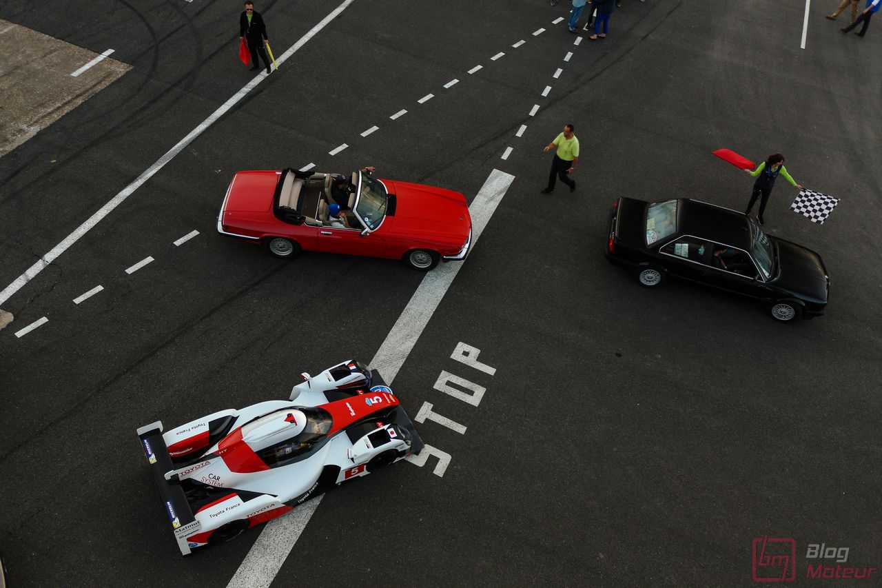 Clap de fin des Grandes Heures Automobiles 2017 avec la dernière parade générale. L’immense majorité des autos prend alors la piste à basse allure pour une dernière fois ; l’image est belle : toutes les autos se mélangent, quelques mélodies mécaniques prennent le dessus, et un concert de klaxons clame la réussite de l’événement coorganisé par les équipes de Franz Hummel et de Paris Auto Events, l’événementiel de Linas-Montlhéry.