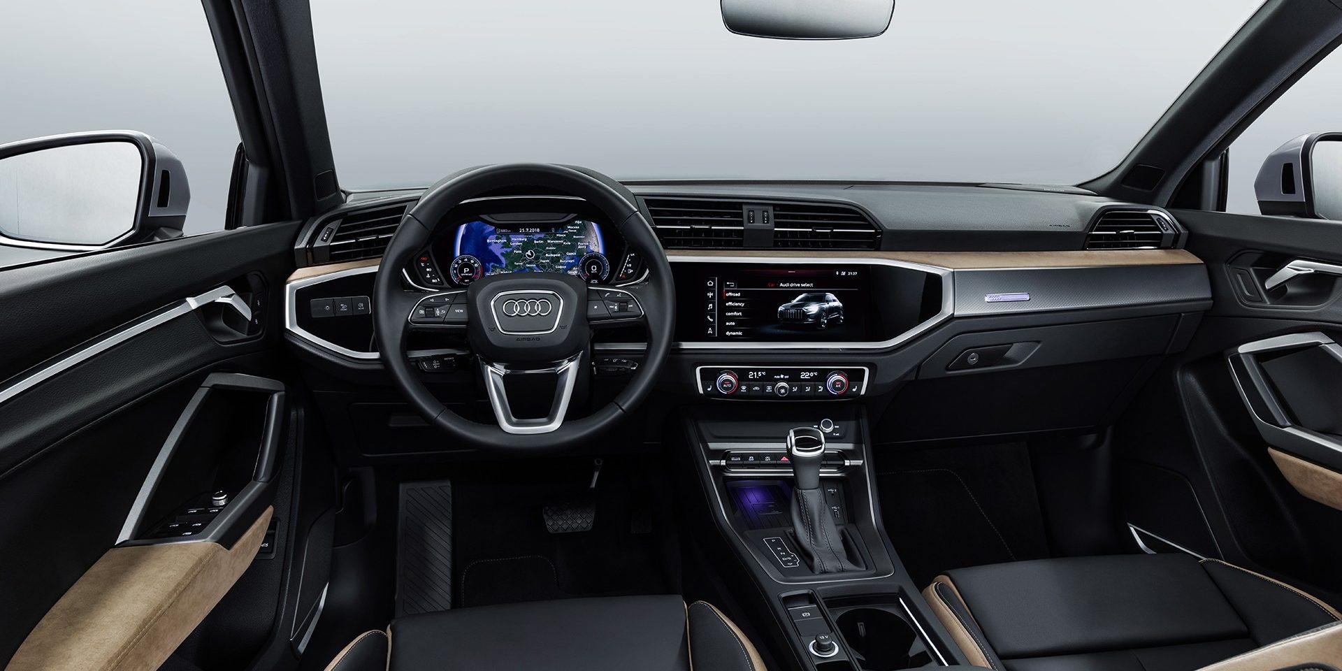 L’intérieur a également subit de grosses évolutions. Désormais l’instrumentation est passée au digital avec l’intégration du Virtual Cockpit. La dalle de 12,3 pouces de diagonale remplace le traditionnel afficheur. Au centre de la planche prend place un écran tactile de 10 pouces de diagonale (repris de l’Audi A8) pour l’entertainment et le contrôle des fonctions du véhicule comme la climatisation.