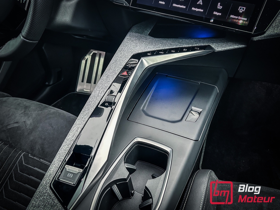 La qualité de fabrication semble conforme à la volonté de montée en gamme du modèle. Certes, certains éléments sonnent creux, mais l’impression globale reste flatteuse, et les assemblages progressent par rapport à l’ancienne génération. On apprécie par ailleurs les « petits détails qui font la différence », comme la présence de feutrine dans les bacs de porte avant. A l’arrière, l’espace est dans la bonne moyenne (sauf pour le passager central, qui devra jouer des coudes), et on peut glisser ses pieds sous le siège avant. Le coffre est lui aussi dans la bonne moyenne, avec 520 litres. Heureusement, car le E-3008 n’a pas de « frunk » à l’avant, par exemple pour y loger les câbles de recharge.