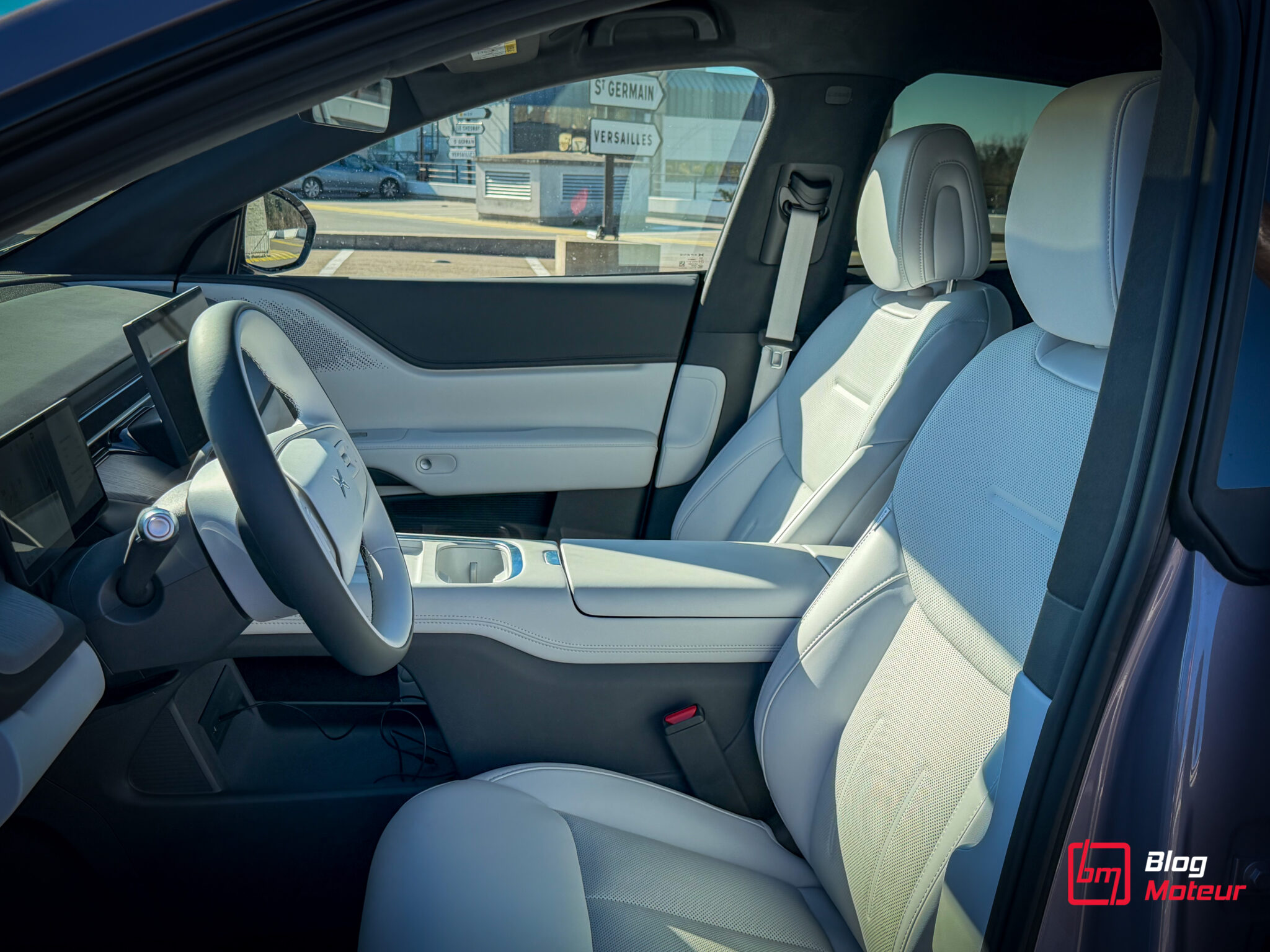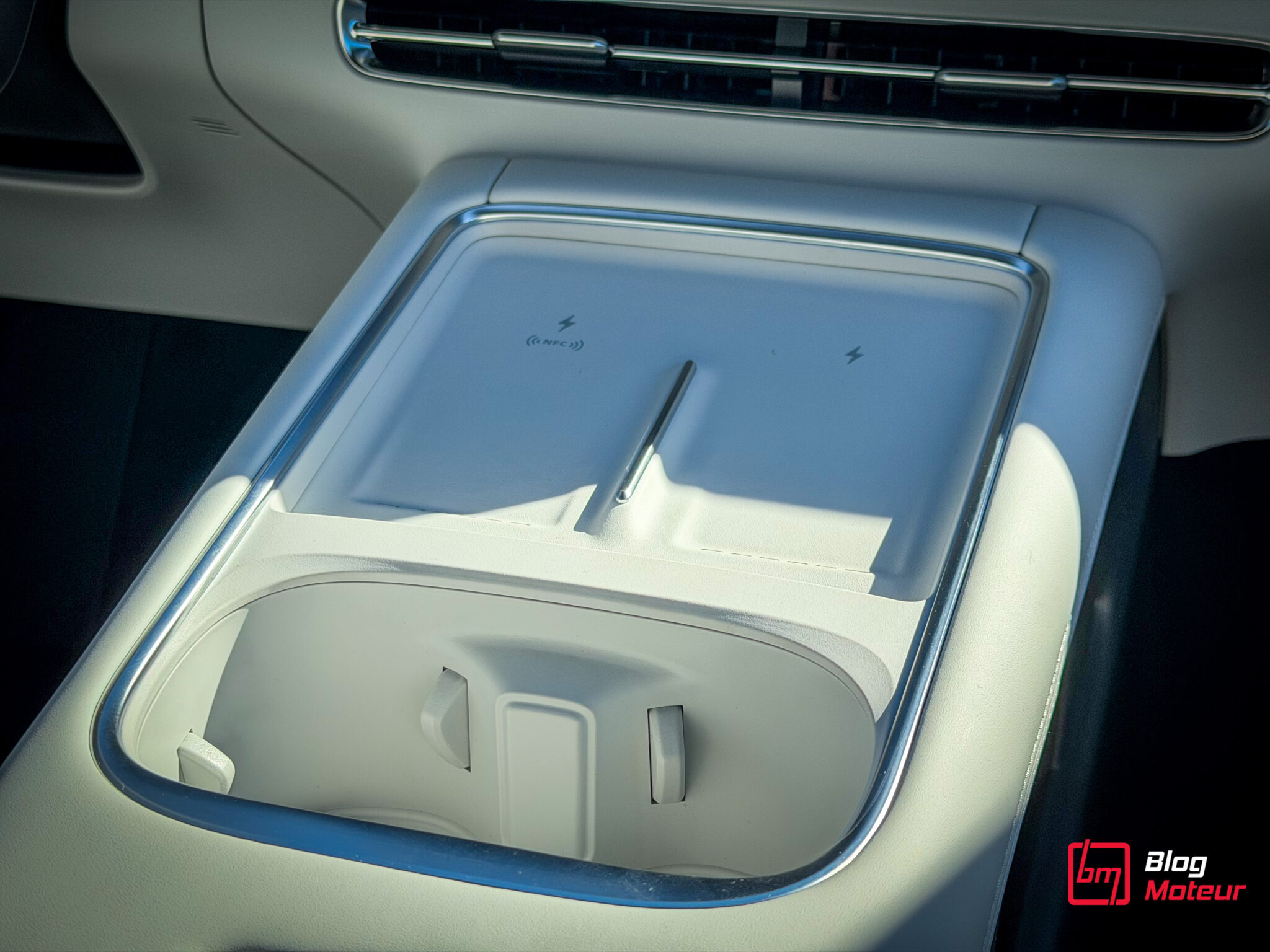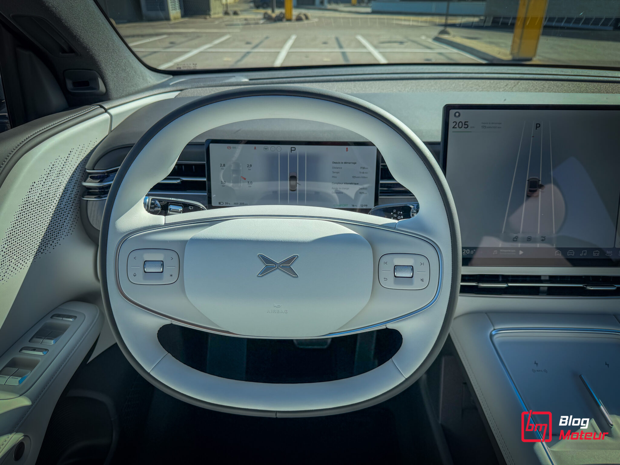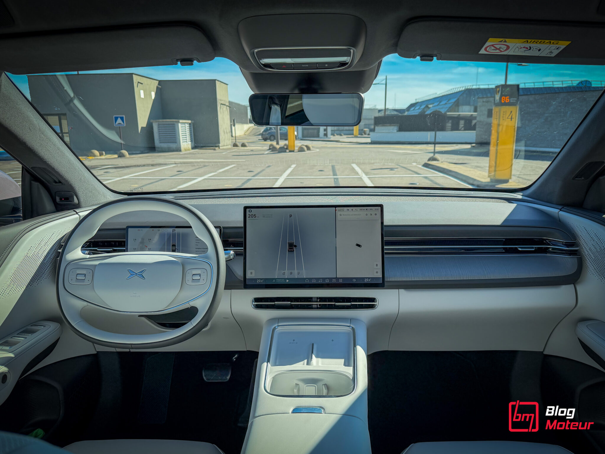 A l’opposé de l’habitacle très épuré du Model Y, la découverte de l’intérieur du G6 constitue un véritable changement d’univers. L’architecture est plus classique, mais aussi plus chaleureuse, surtout avec l’habitacle clair (« gris diamant » dixit XPeng) de mon modèle d’essai.