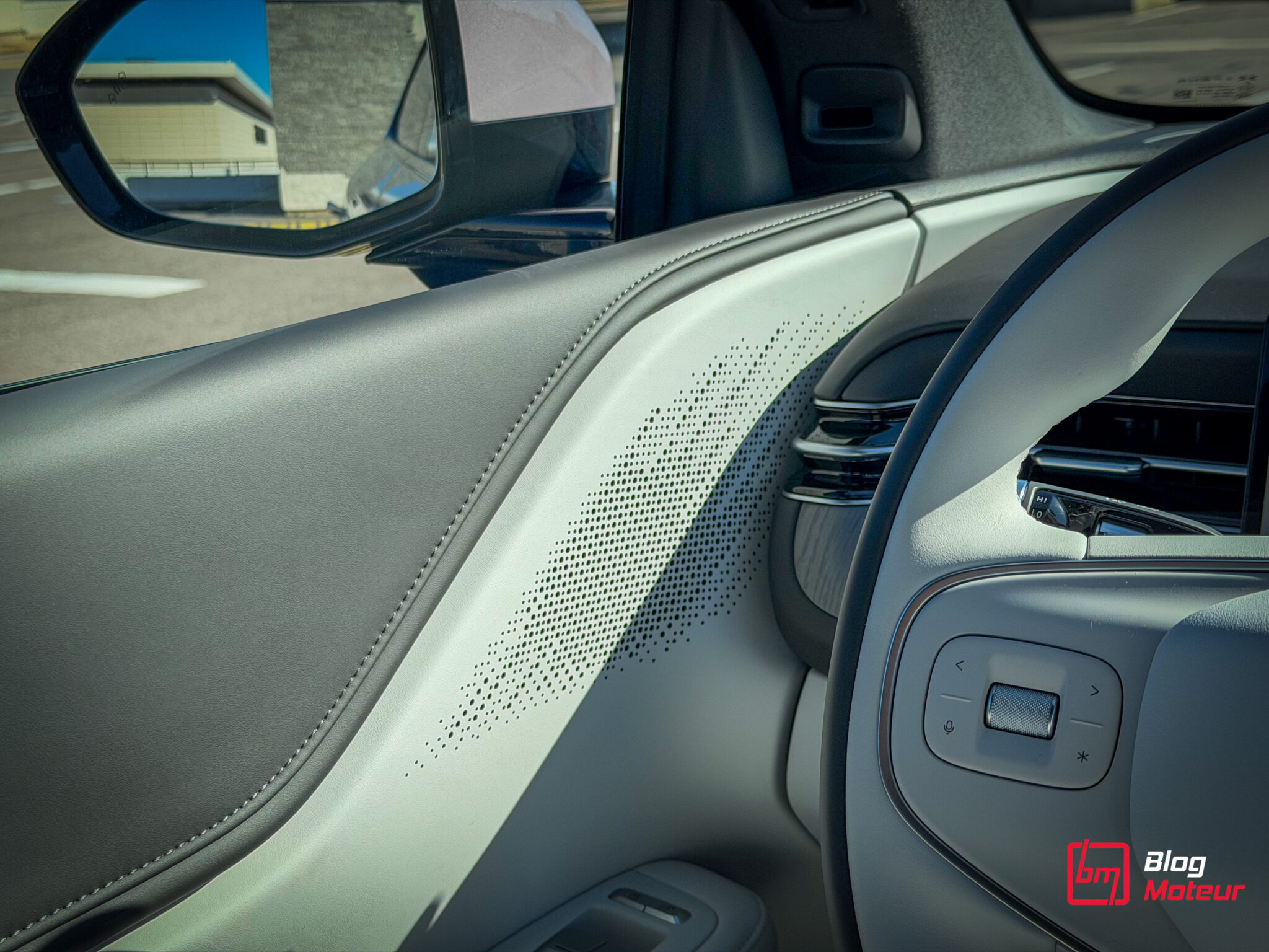 Un point est au dessus de toute critique : l’insonorisation, tout bonnement excellente. À vitesse autoroutière, l’habitacle est remarquablement silencieux. Merci au vitrage acoustique, présent à l’avant comme à l’arrière.