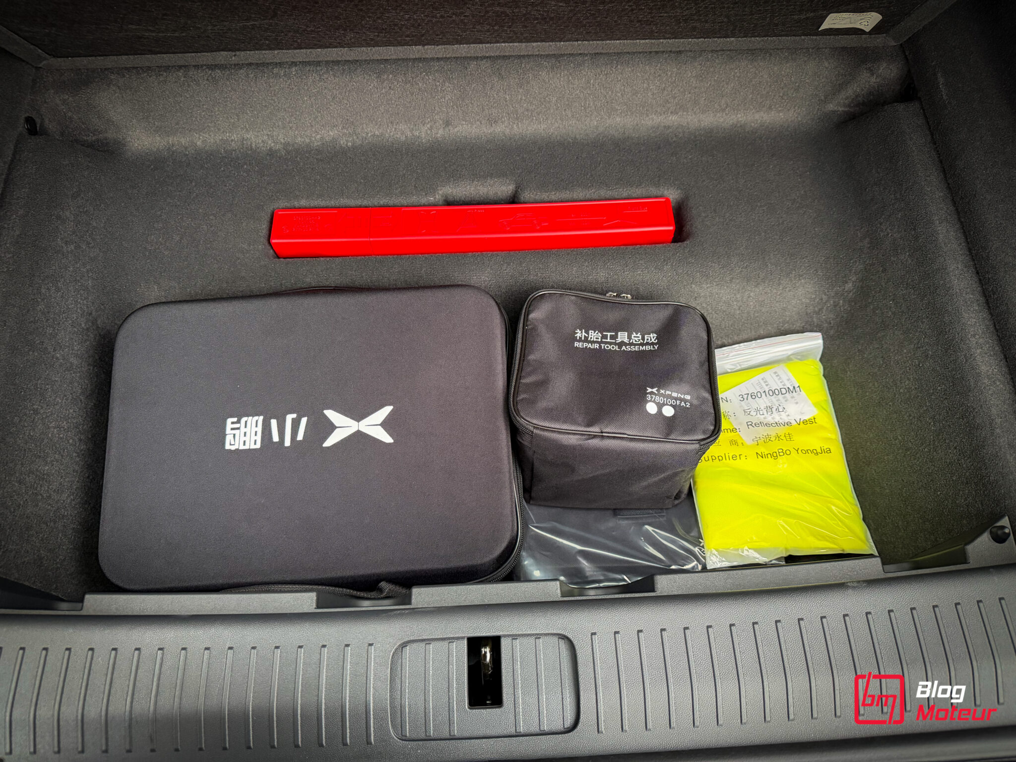 En digne SUV familial, le coffre du G6 offre une bonne capacité d’emport, à 571 litres (jusqu’à 1.374 L avec sièges rabattus). Il est toutefois largement supplanté par le Tesla Model Y, qui culmine à 835 litres (volume sans la tablette a priori). Par ailleurs, notez que le G6 n’offre pas de coffre à l’avant/frunk, et que son sous-coffre est bien moins profond que celui du SUV électrique Américain.