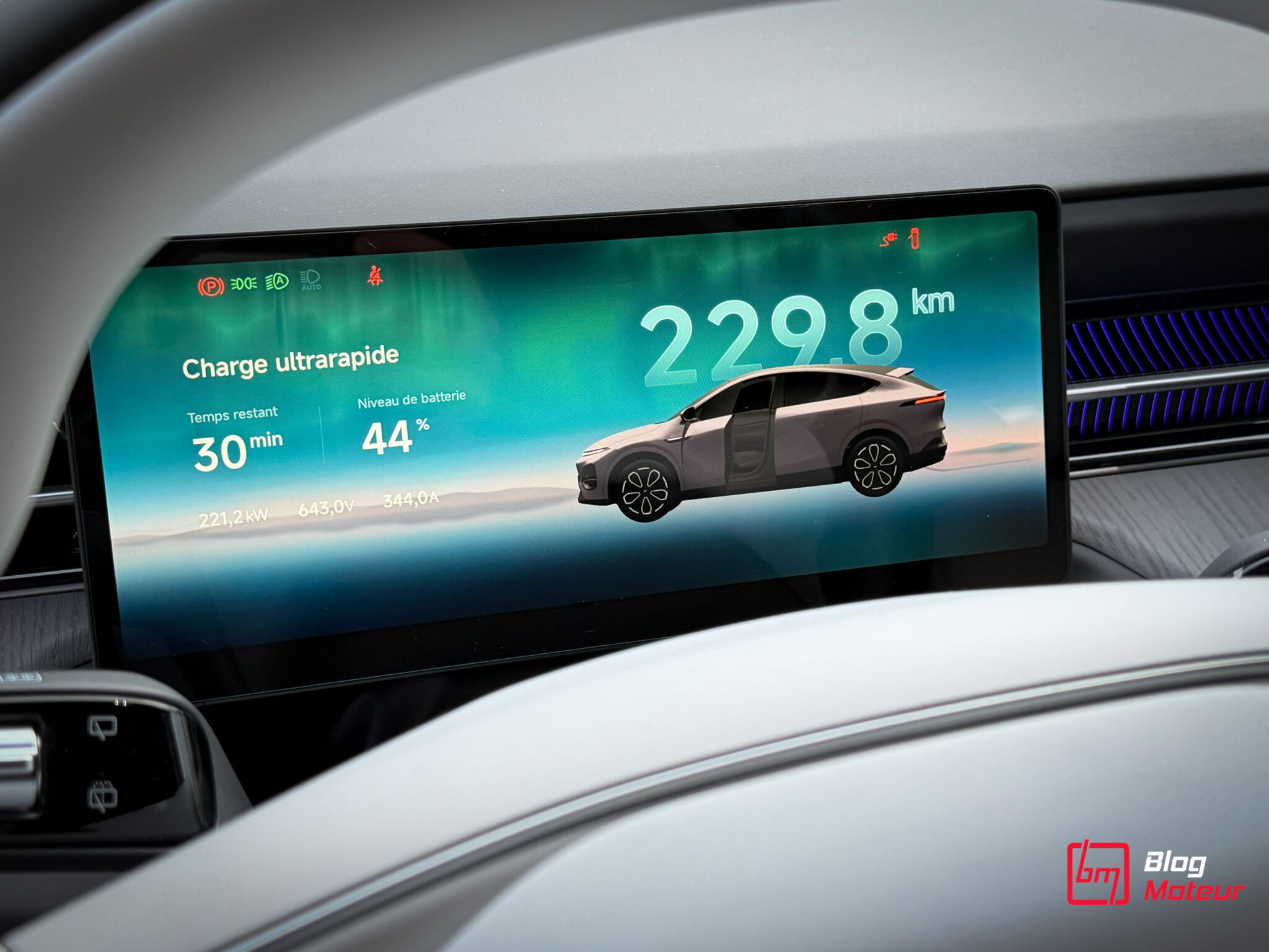 En revanche, le G6 reprend clairement l’avantage sur un autre terrain : la recharge. Depuis son restylage, le SUV Chinois dispose en effet d’une architecture électrique 800 volts. Cette technologie, que l’on retrouve sur certains modèles du groupe Hyundai-Kia, ou sur des véhicules prestigieux comme les Porsche Taycan et Audi e-tron GT, permet au G6 d’atteindre des sommets en terme de puissance/vitesse de recharge.