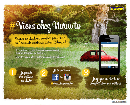 Norauto vient de lancer un grand concours baptisé Viens Chez Norauto, et qui prendra fin le 6 janvier prochain. Le principe est simple, il suffit de prendre votre voiture (vieillissante et malade si possible) en photo, de la poster en ligne via Facebook ou Instagram en prenant le soin d’y attacher le hashtag #ViensChezNorauto, ainsi qu’une petite légende. La photo qui sera ensuite sélectionnée par un jury composé de journalistes automobiles (dont Blog-Moteur fera évidemment partie) permettra à son propriétaire de bénéficier d’un check-up complet de sa voiture, le tout gracieusement offert par Norauto !